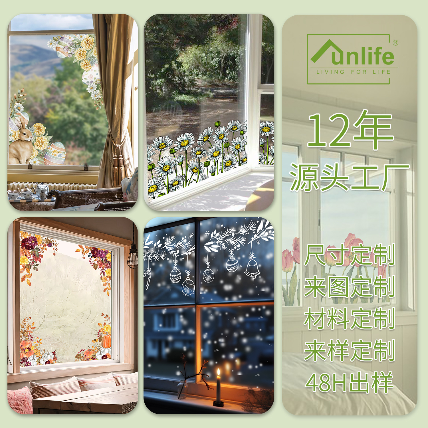 Funlife 소스 공장 독점 맞춤형 창 스티커 사계절 다채로운 정전기 접착제가없는 장식 유리 필름 SE스토어 가기