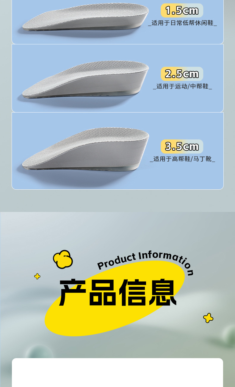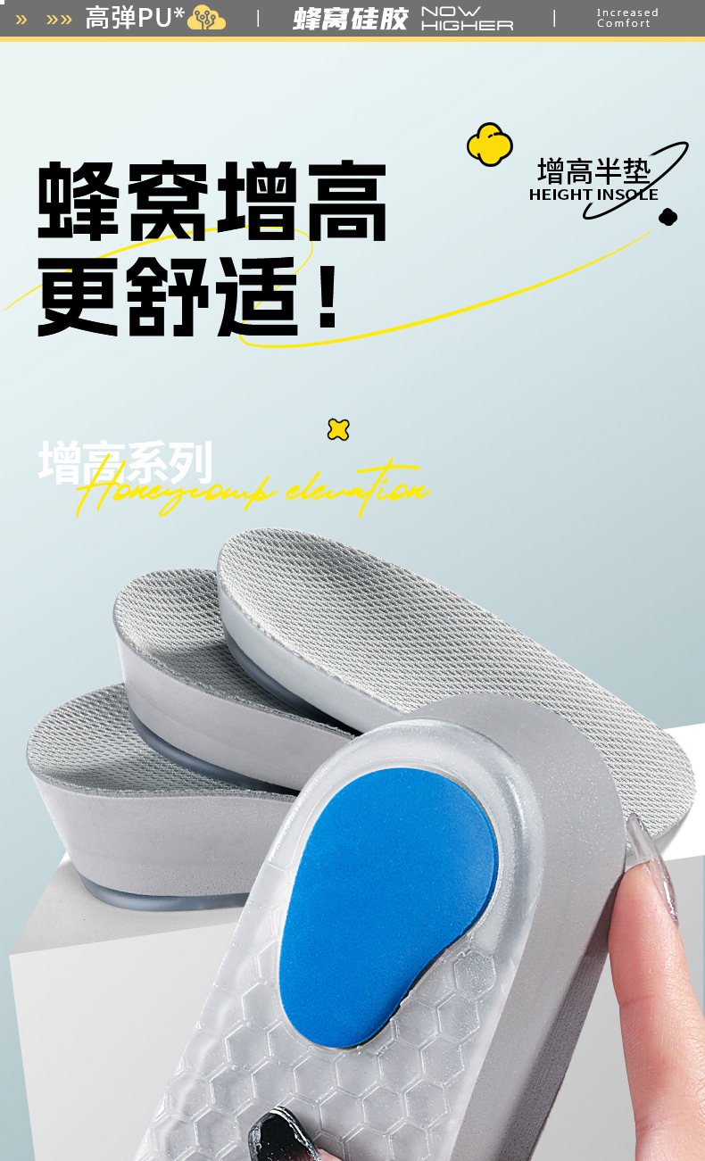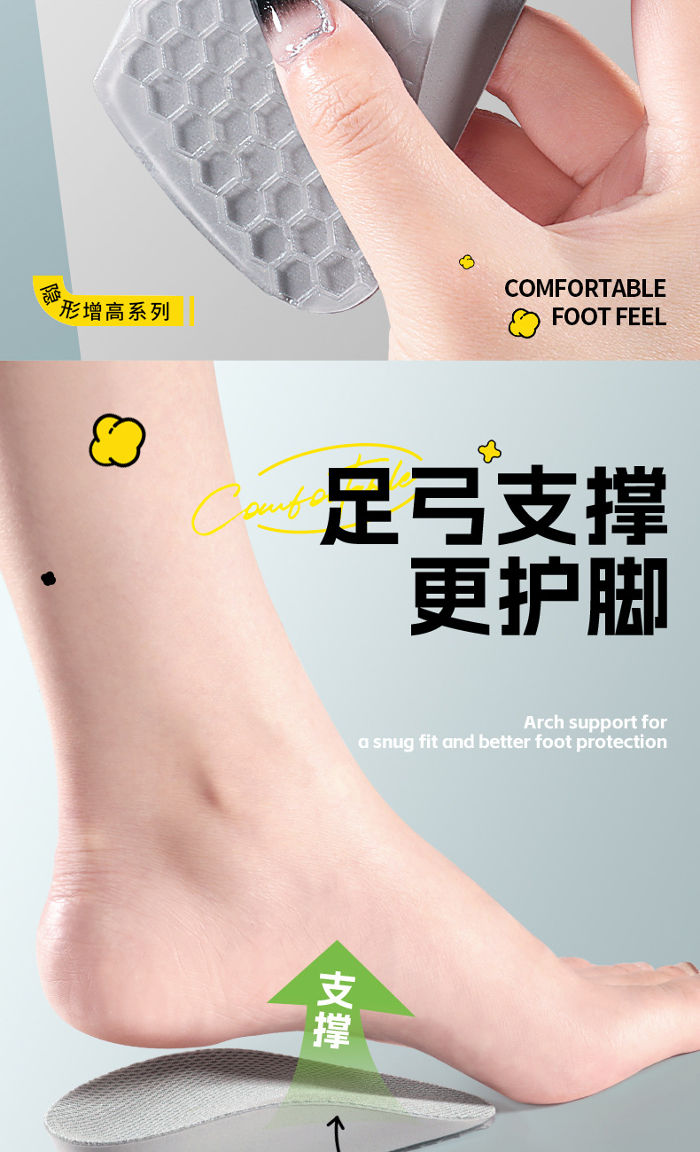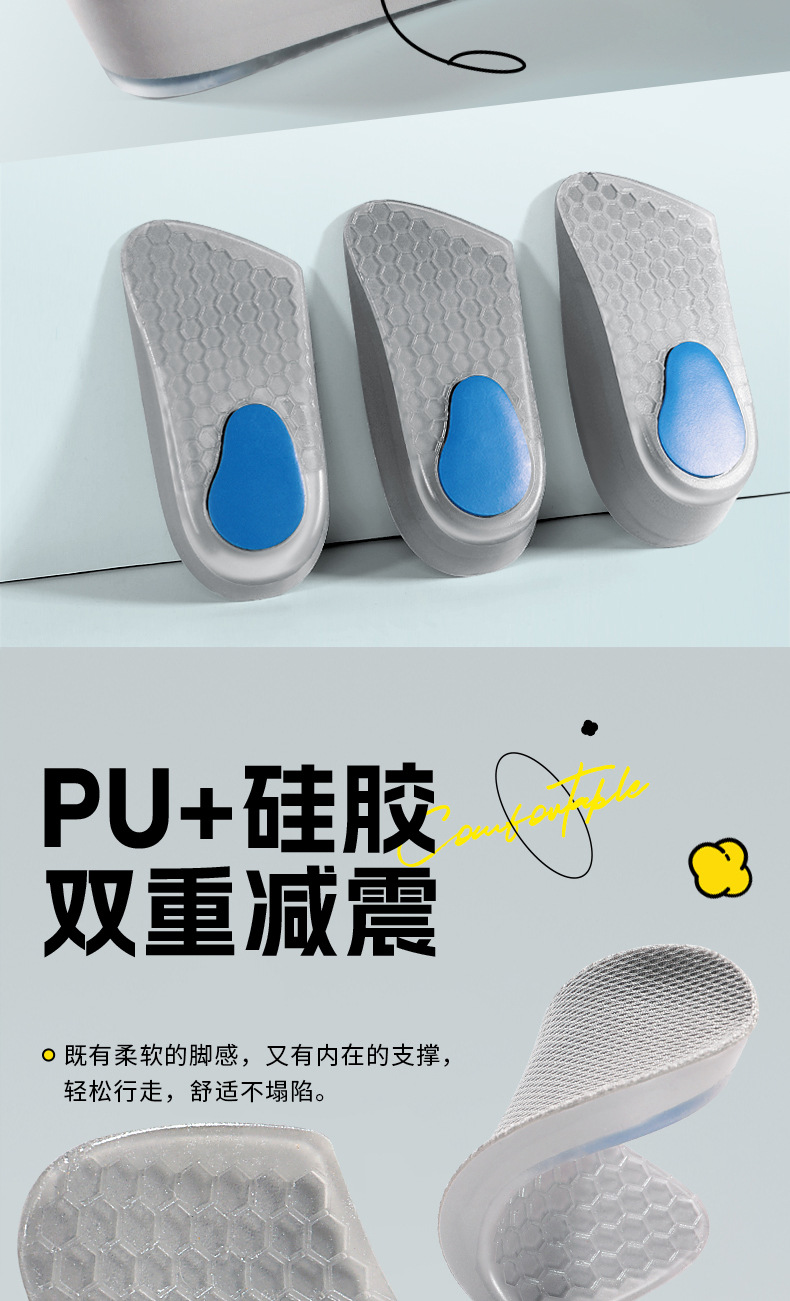 7 점 증가 된 깔창 여성 마틴 부츠 특별한 보이지 않는 실리콘 피곤하지 않은 발 하프 패드 스포츠 충격 흡수 도매