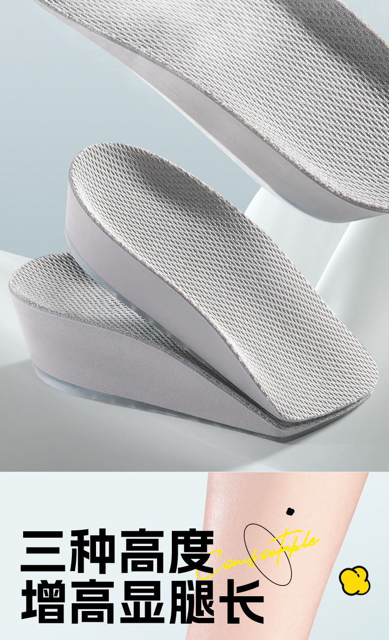 7 점 증가 된 깔창 여성 마틴 부츠 특별한 보이지 않는 실리콘 피곤하지 않은 발 하프 패드 스포츠 충격 흡수 도매스토어 가기