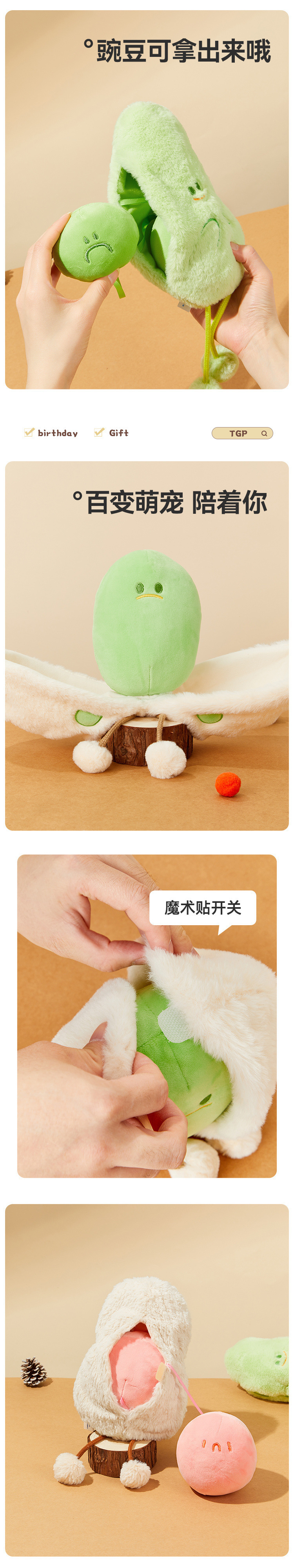 감정적 인 완두콩 봉제 인형, 어린이 장난감 피스타치오 포옹 제공