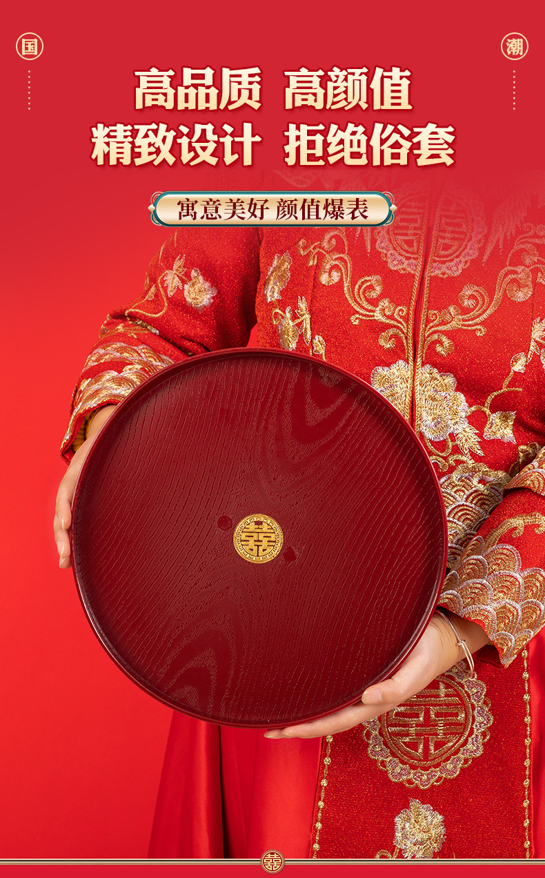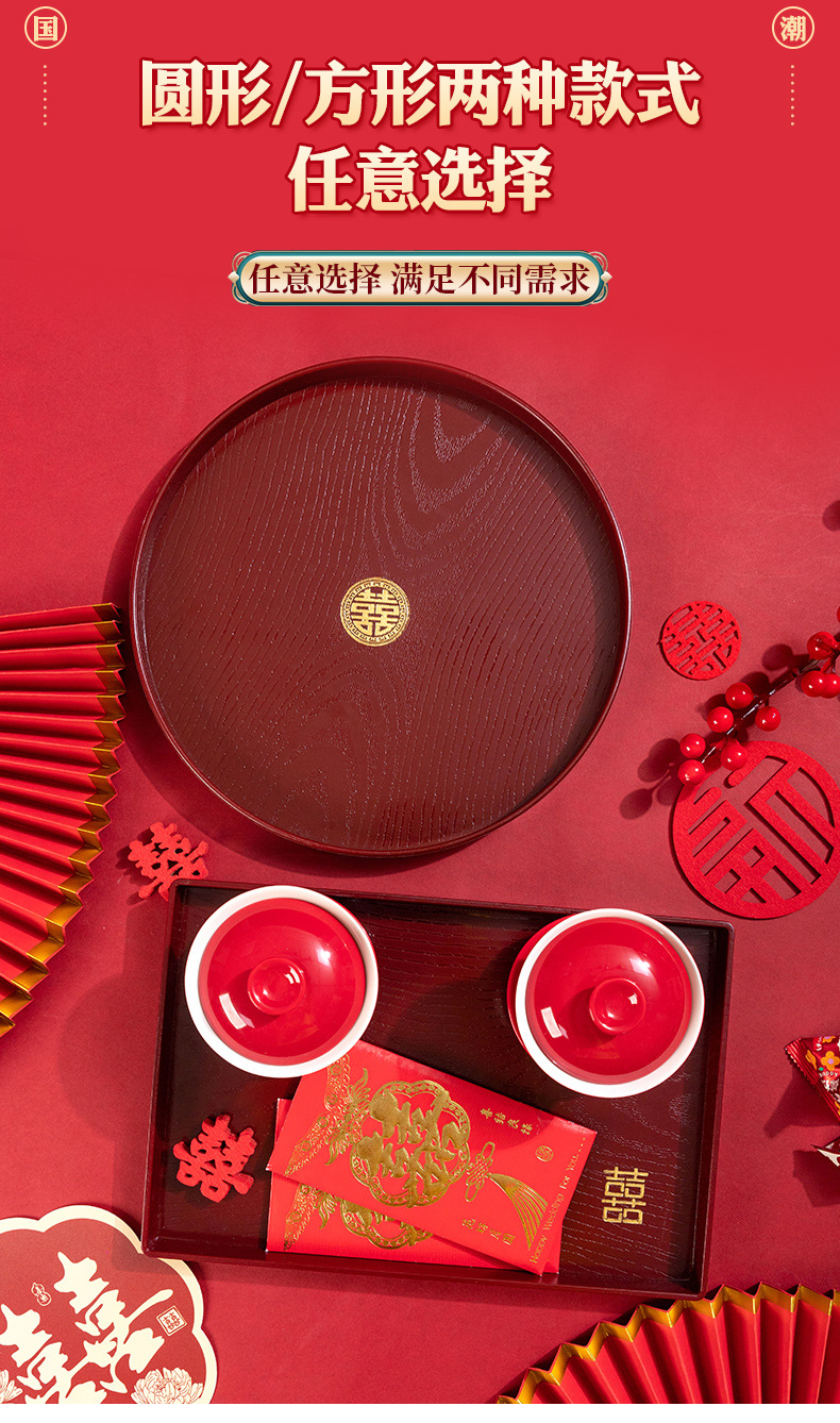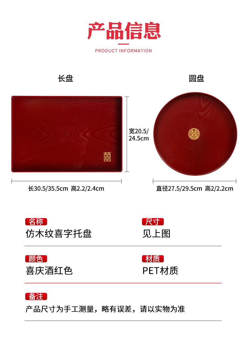 플라스틱 모조 우드 그레인 버건디 트레이 티 트레이 홈 하우스 웨딩 과일 트레이 스낵 새 집 커피 테이블 디스크 롱 트레이