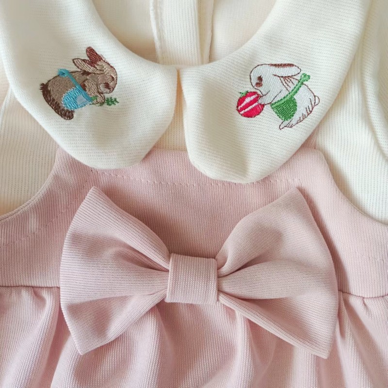 • 인형 칼라 자수 토끼 핑크