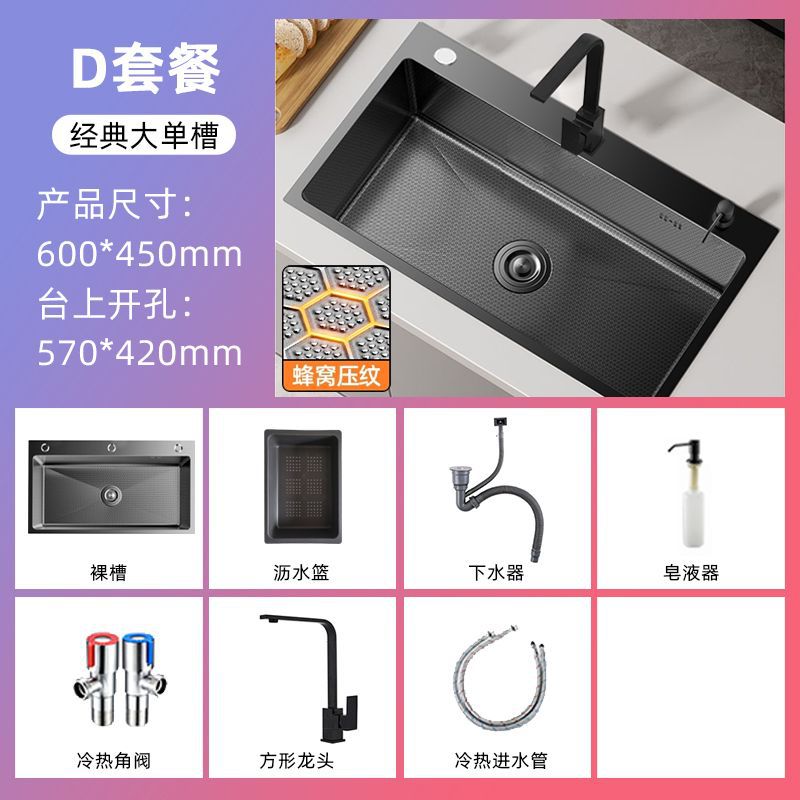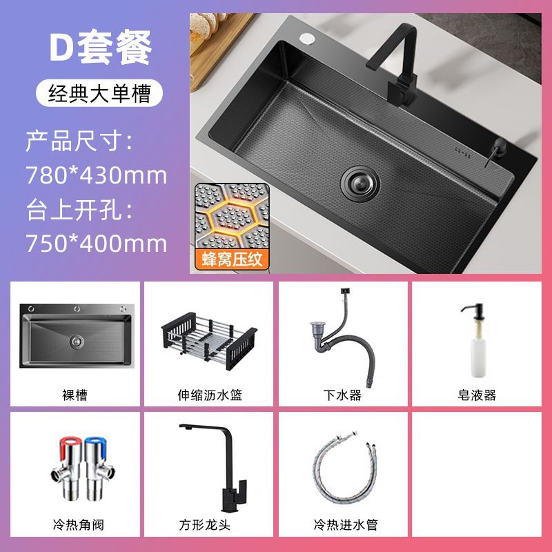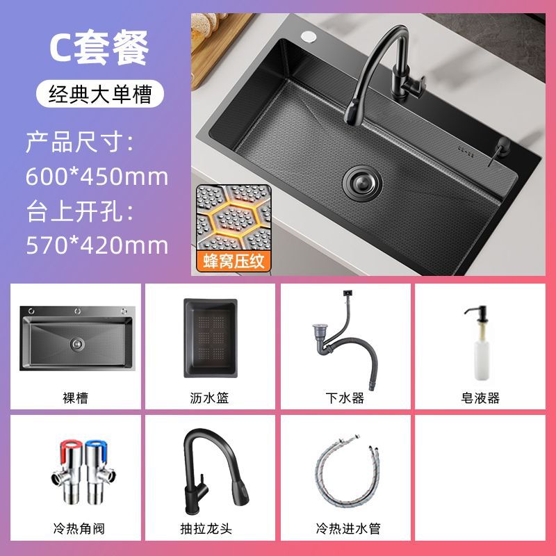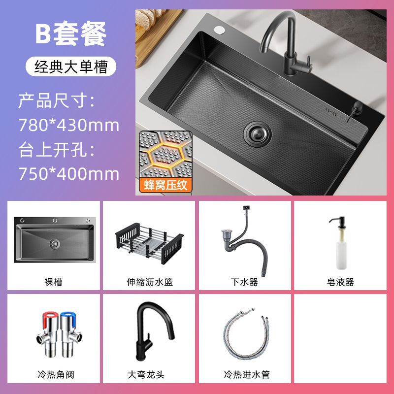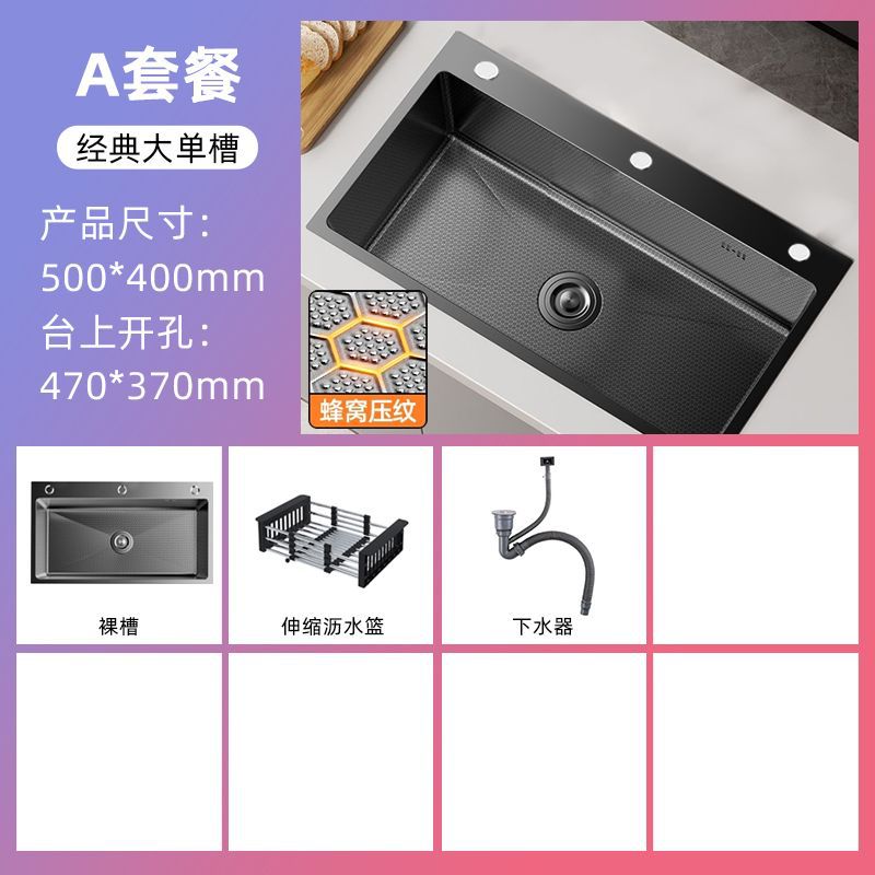 304 스테인레스 스틸 두꺼운 블랙 킹 콩 나노 주방 싱크 큰 단일 싱크 가정용 야채 싱크 야채 싱크 완벽한 야채 싱크 세트스토어 가기