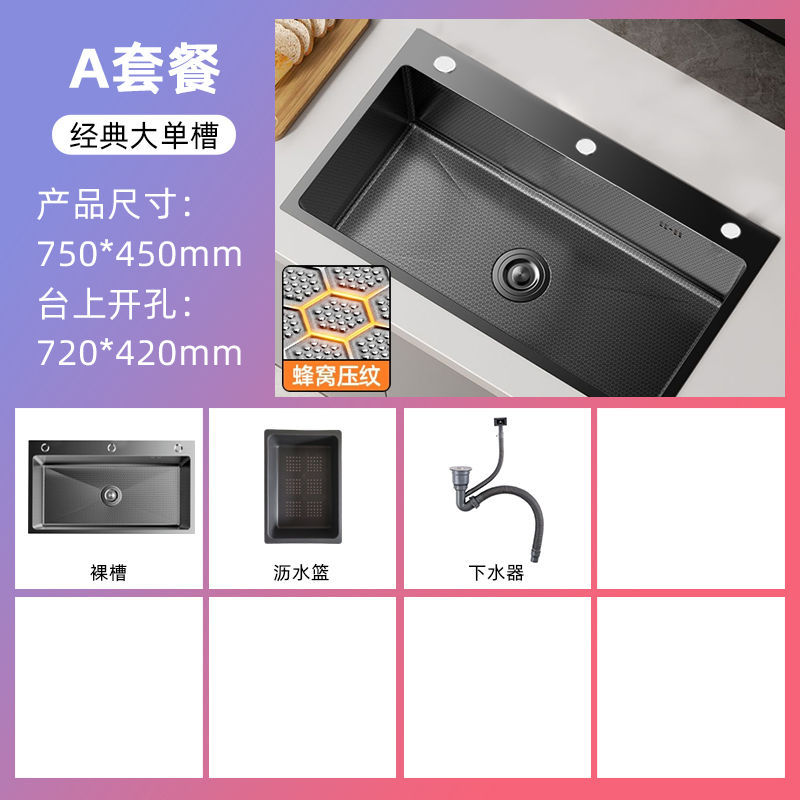 304 스테인레스 스틸 두꺼운 블랙 킹 콩 나노 주방 싱크 큰 단일 싱크 가정용 야채 싱크 야채 싱크 완벽한 야채 싱크 세트