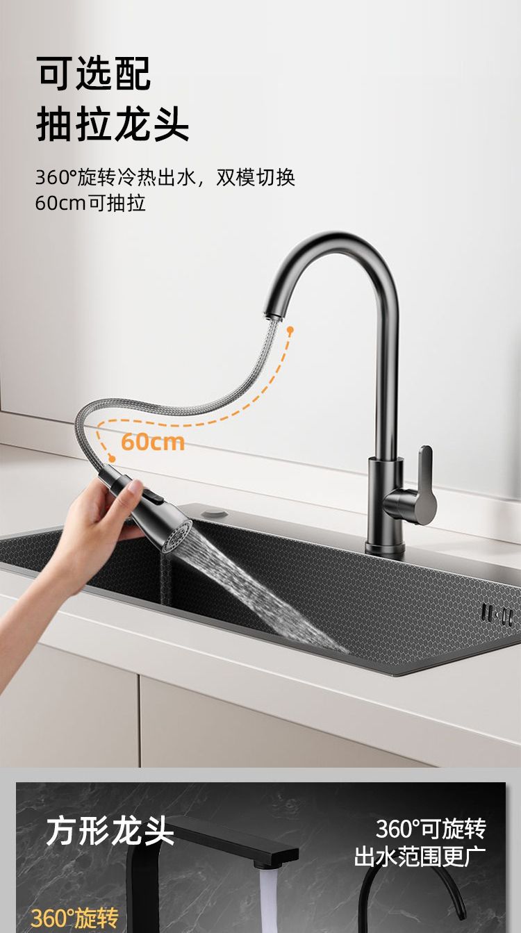• 나노 벌집 항균 및 내마모성 60*45-블랙 킹콩 럭셔리 패키지-인출식 수전 버전