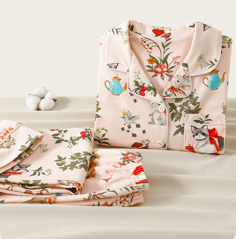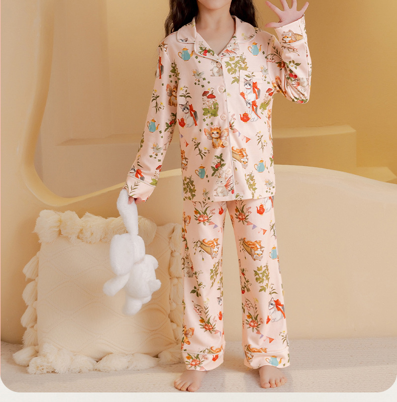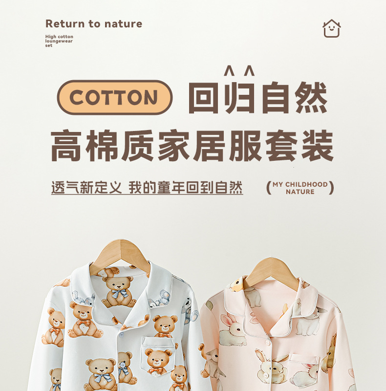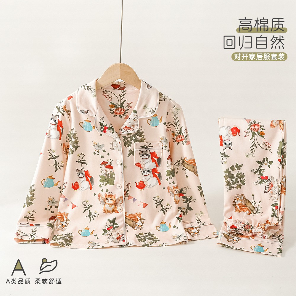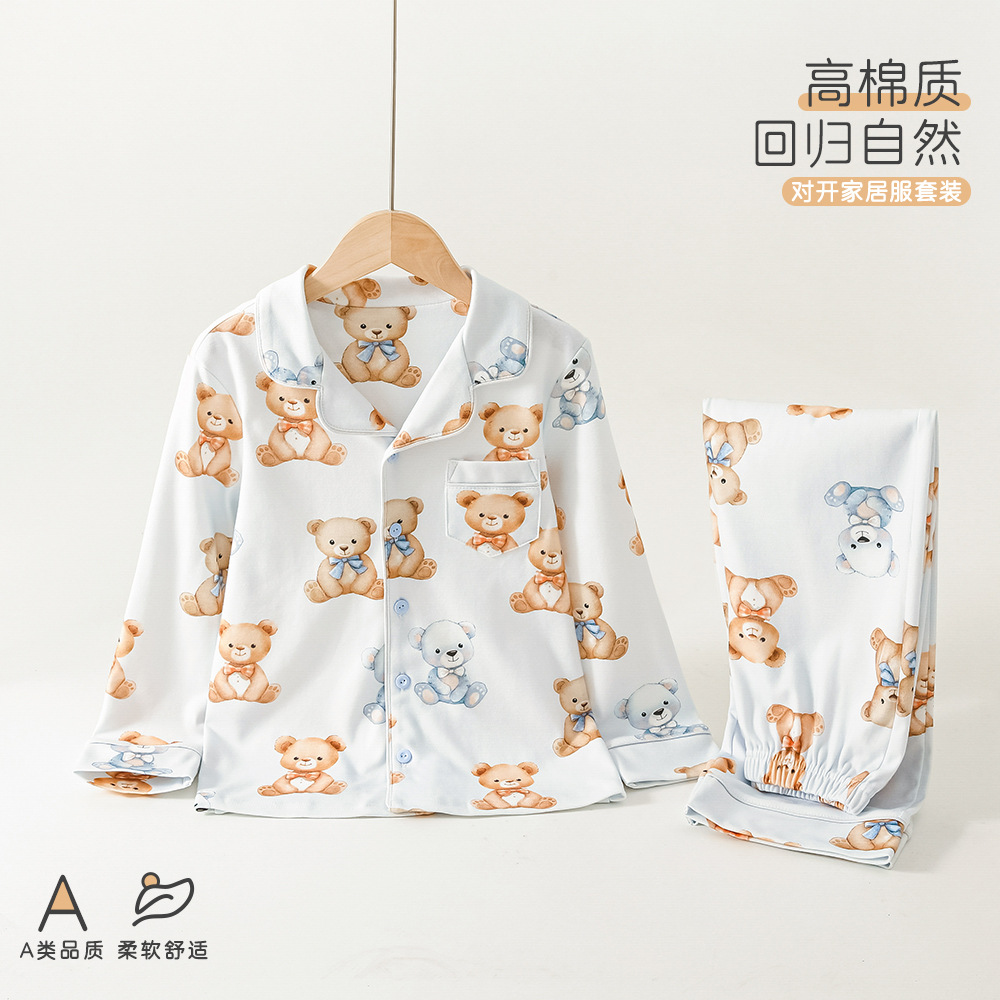 어린이 홈웨어 A급 순면 아기 잠옷 남녀공용 긴팔 투피스 세트 어린이 가을 의류스토어 가기