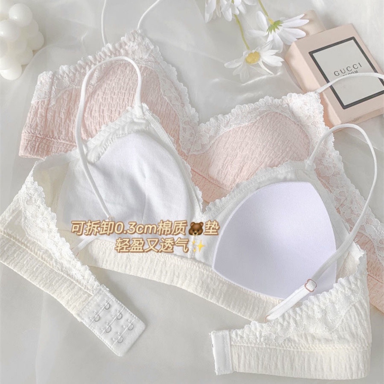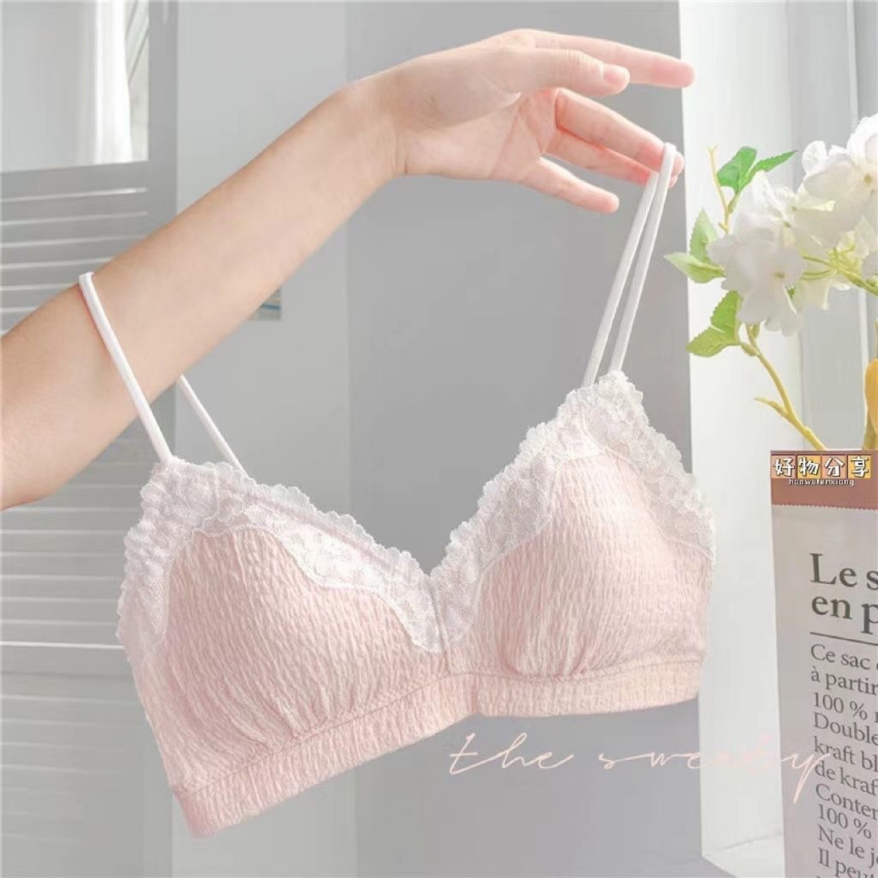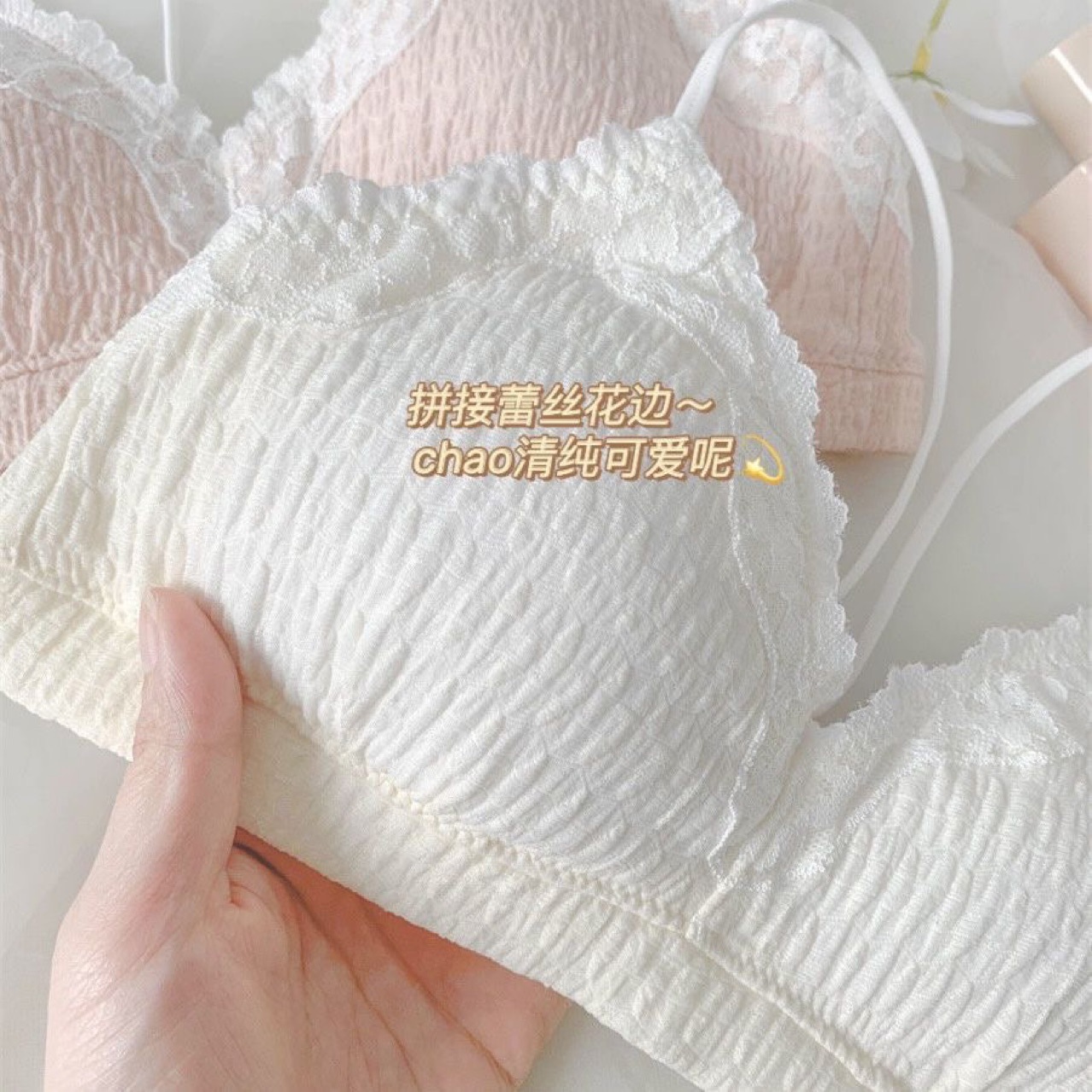 폭발 여름 속옷 여자 플리츠 슬링 프렌치 트라이앵글 컵 작은 가슴 레이스 브라 얇은 컵 달콤한 작은 신선한스토어 가기