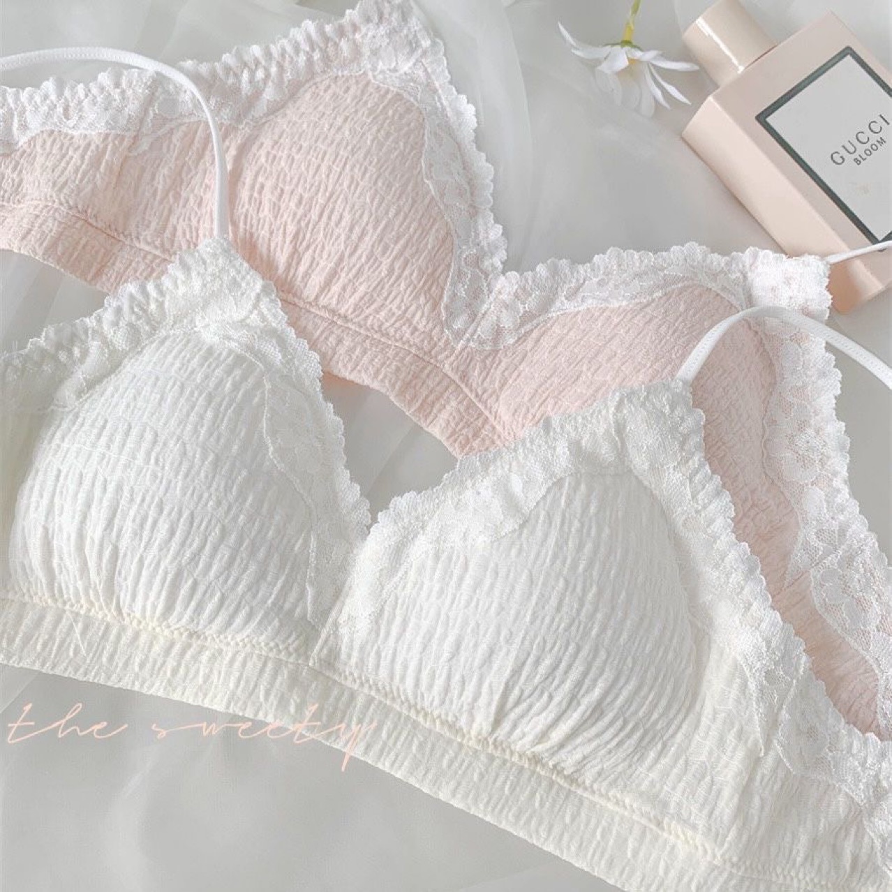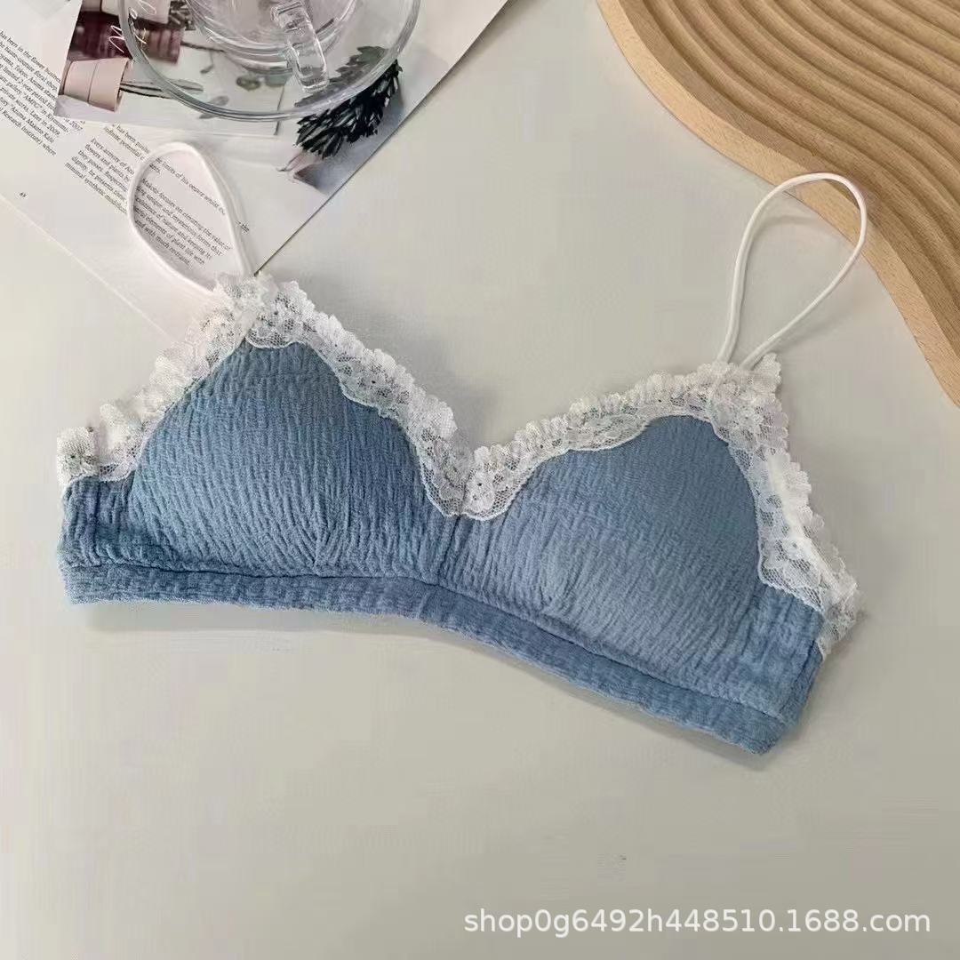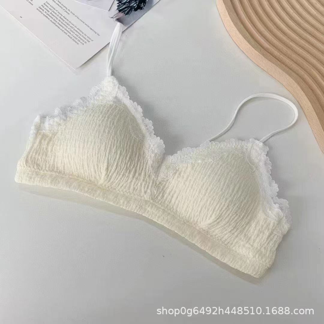 폭발 여름 속옷 여자 플리츠 슬링 프렌치 트라이앵글 컵 작은 가슴 레이스 브라 얇은 컵 달콤한 작은 신선한스토어 가기