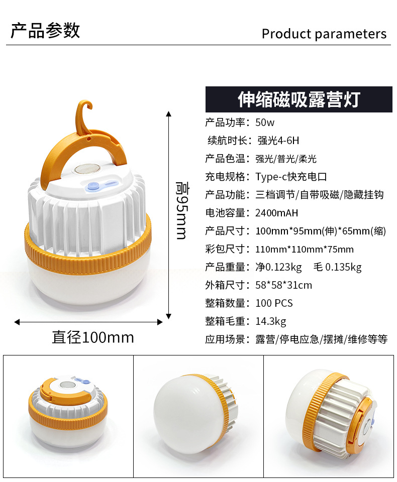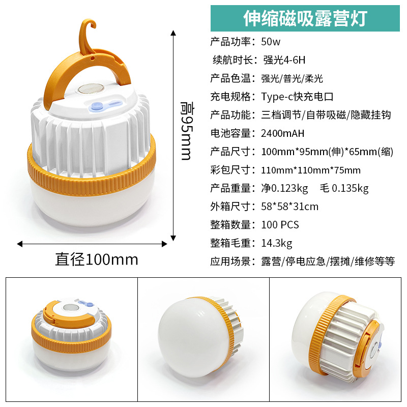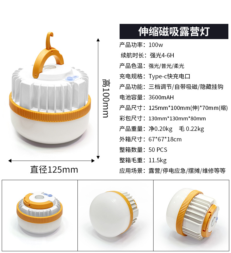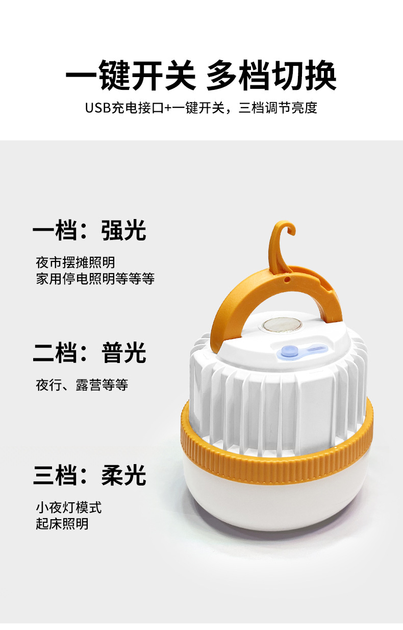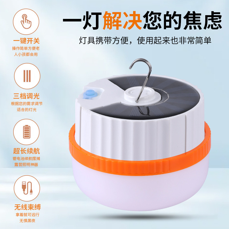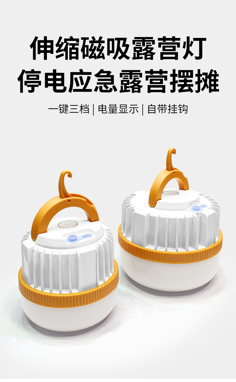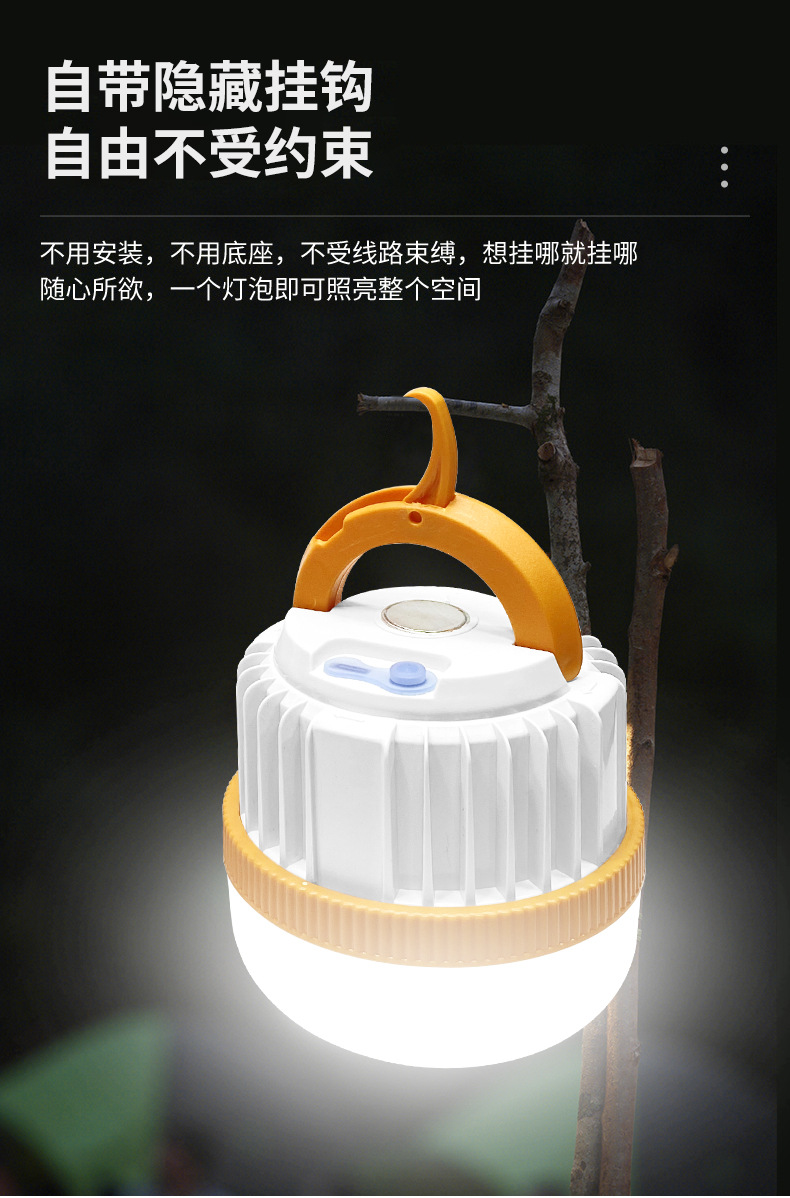 Led 비상 충전 전구 새로운 야외 야시장 마구간 텐트 후크 캠핑 램프 자기 변형 캠핑 램프
