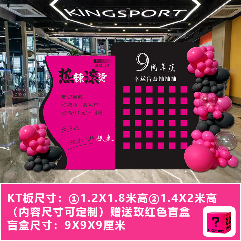 • 1.2x1.8+1.4x2-뜨거운 장미색 사각형 상자 40개 + 검정색 분홍색 풍선
