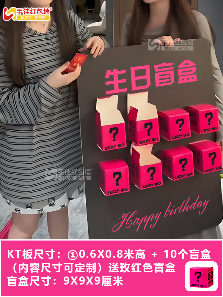 • 생일 블라인드 박스 0.6x0.8+10 로즈 레드 사각 박스