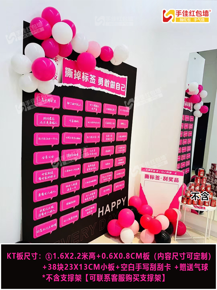• 1.6x2.2-+0.6x0.8 라벨을 떼어내고 용감하게 자신이 되어보세요 + 라벨 38개 + 블랙 핑크 풍선 패키지