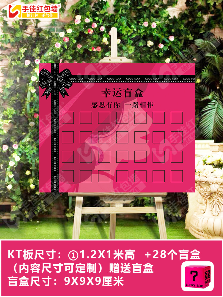 • 로즈 레드 GOOD-LUCK 럭키 블라인드 박스-1.2x1kt 보드 28 그리드 배송 30 로즈 레드 사각 상자