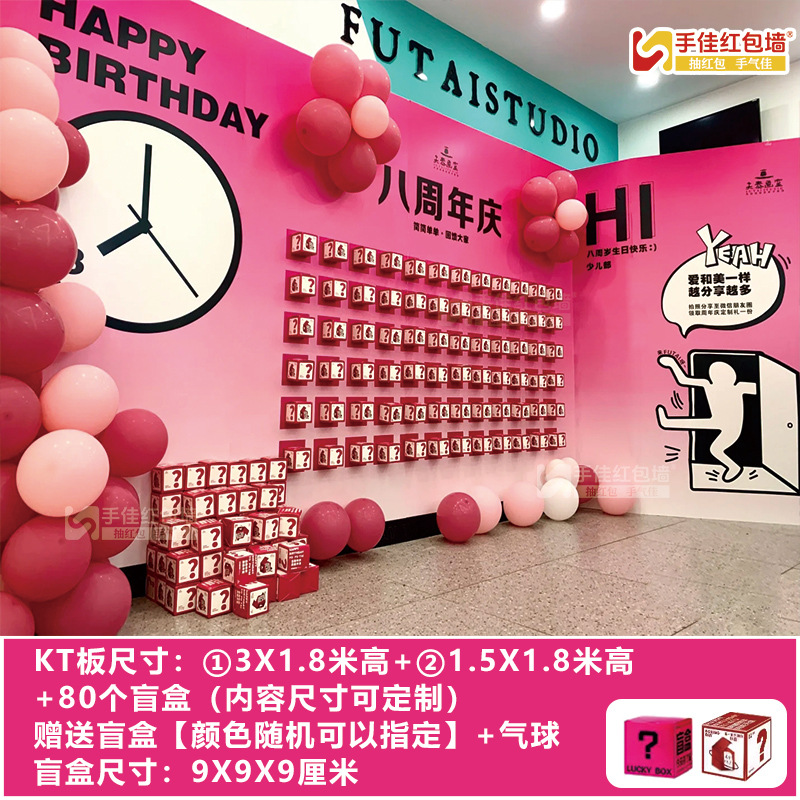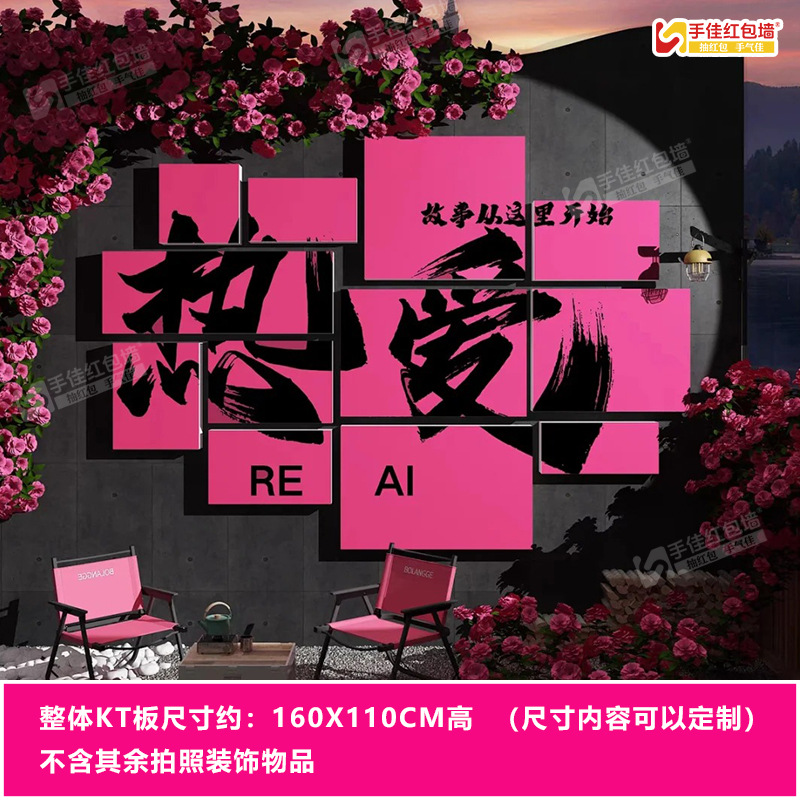 로즈 레드 그물 붉은 벽 축제 레이아웃 분위기 보드 장식 행운의 시그니처 벽 오프닝 활동 블라인드 박스스토어 가기