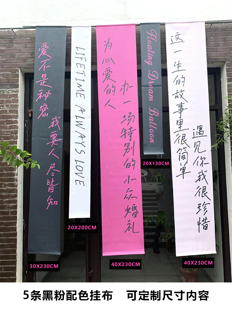 • 블랙과 핑크 컬러의 행잉 천 - 웨딩 스타일