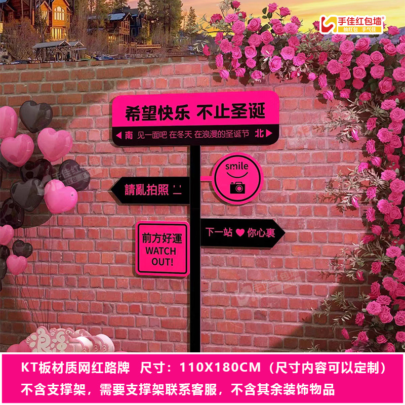 • 1.1x 1.8m 블랙 핑크 거리 표지판 - 행복하길 바랍니다