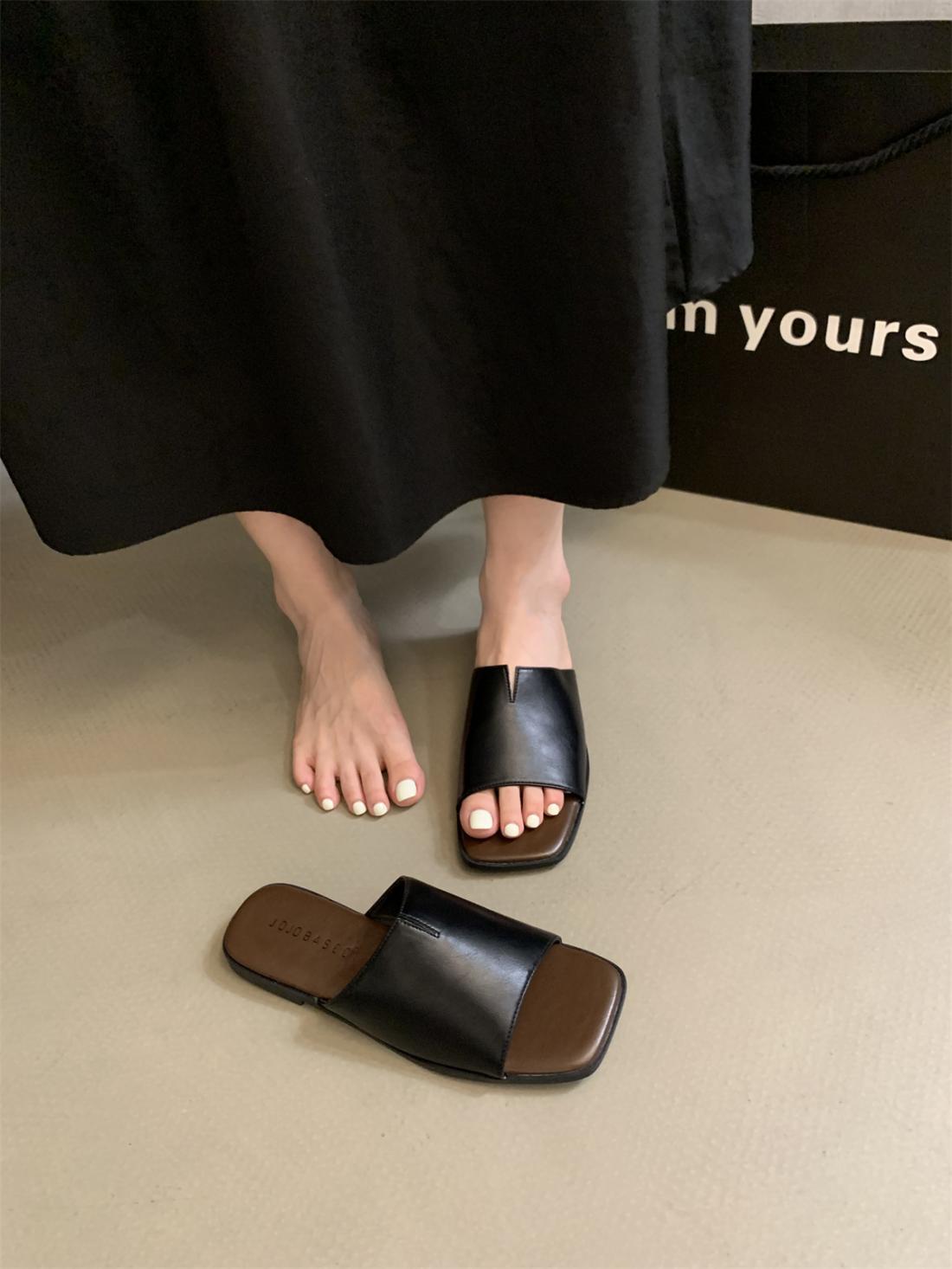 여성 슬리퍼 여성 여름 나들이복 2024 새 한국식 페어리 비치 소프트 플랫 샌들스토어 가기