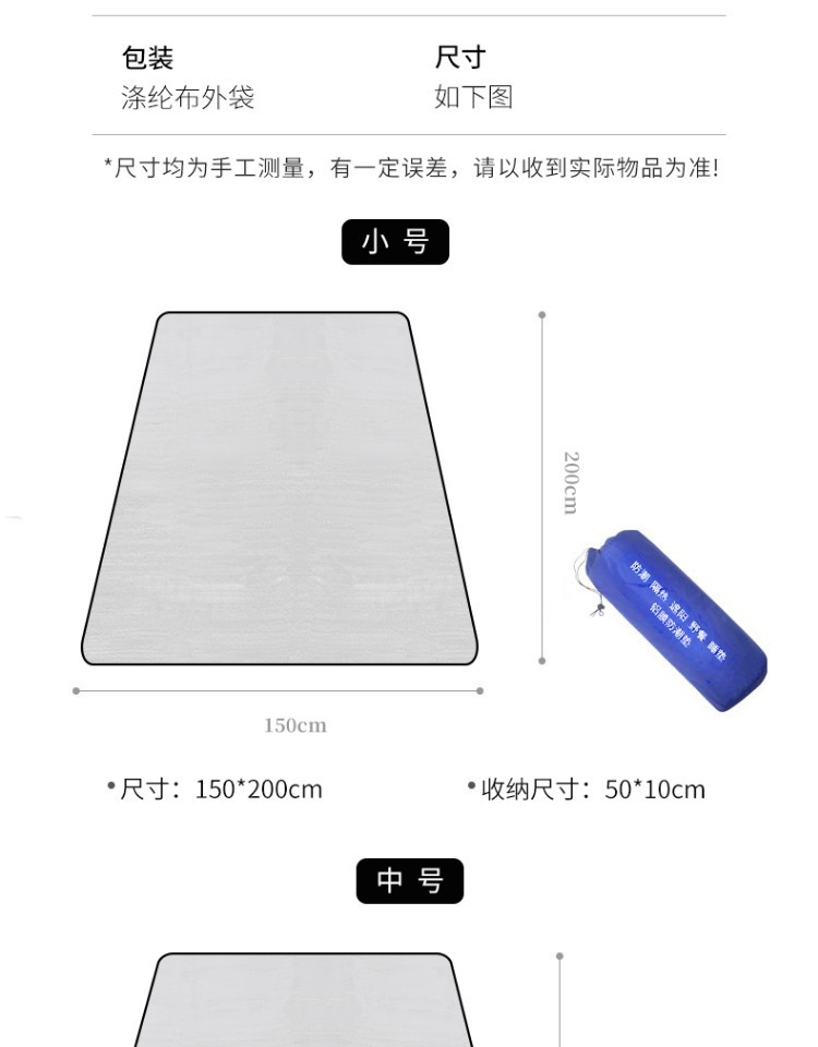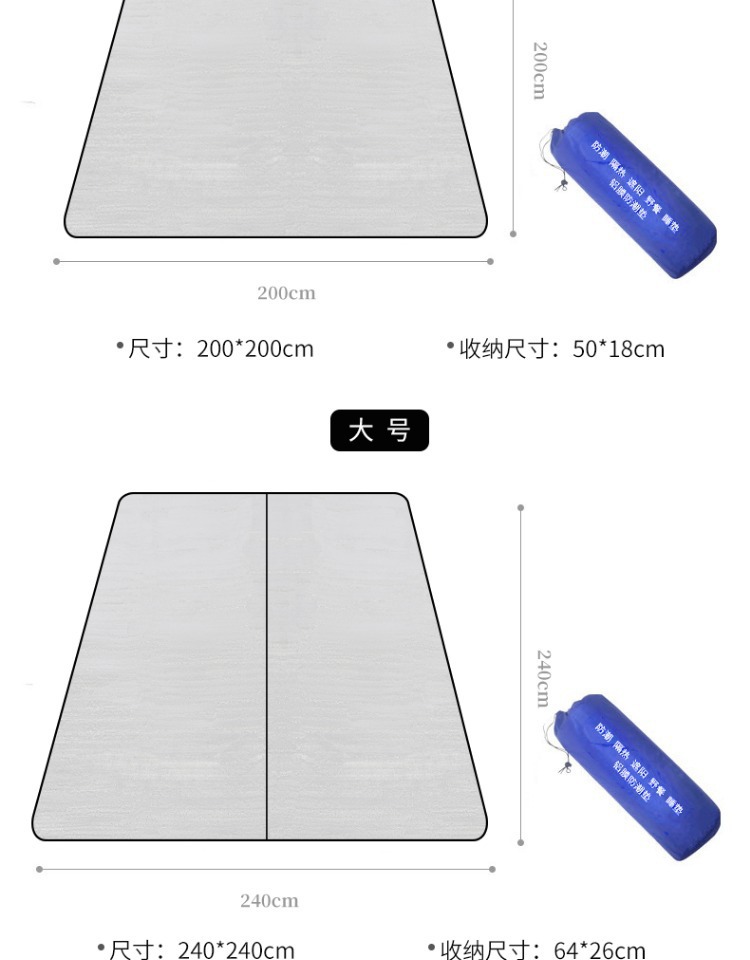 더블 사이드 두꺼운 야외 캠프장 매트 텐트 더블 비치 파크 쿠션 피크닉 알루미늄 필름 습기 방지 매트 도매스토어 가기