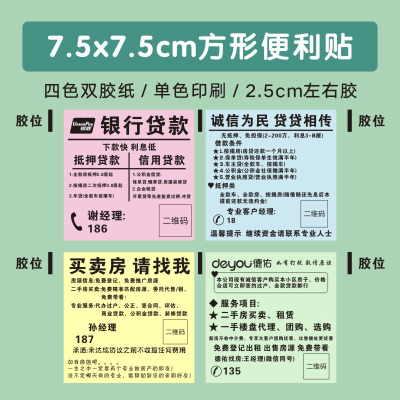 • 인쇄되지 않은 공백 정사각형 4색 믹스 앤 매치 2500매