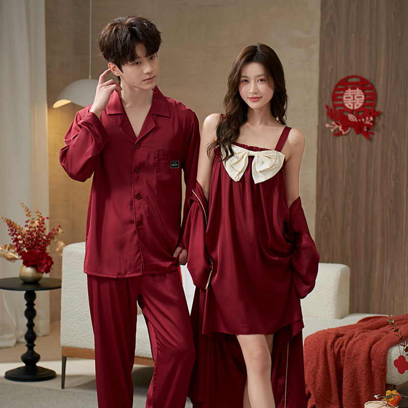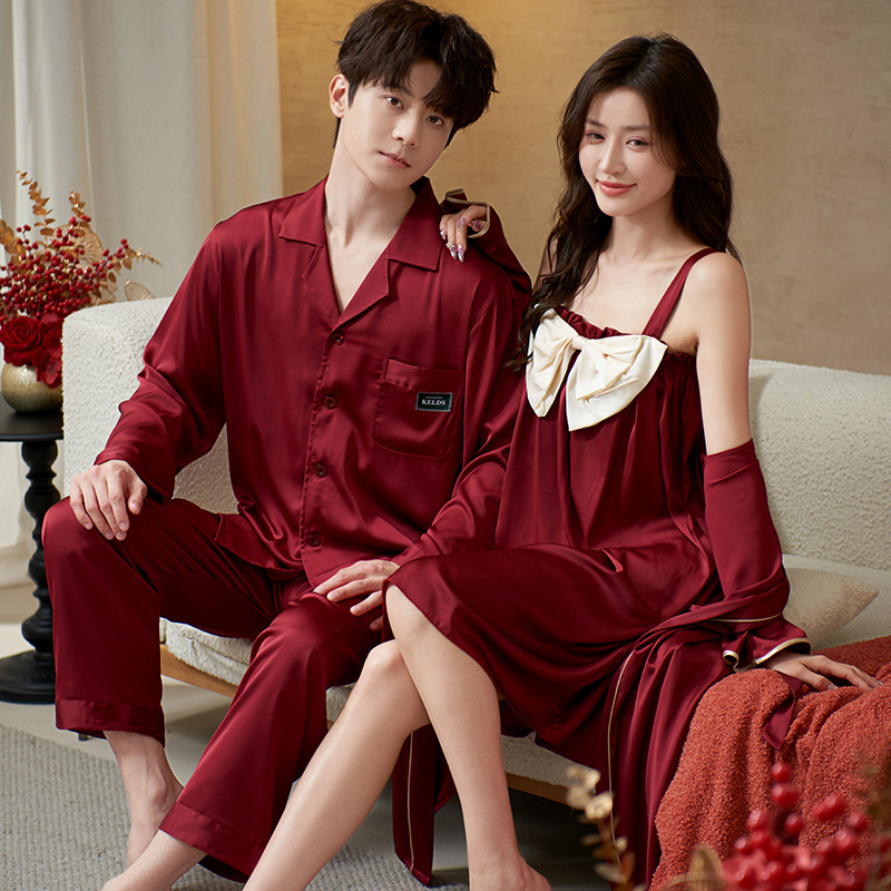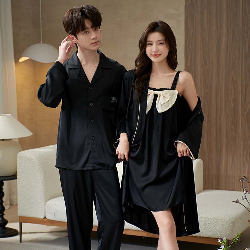 2025 봄과 가을 새로운 하이 엔드 긴팔 아이스 실크 파자마 남자 옷깃 캐주얼 플러스 사이즈 외부 옷을 입고스토어 가기
