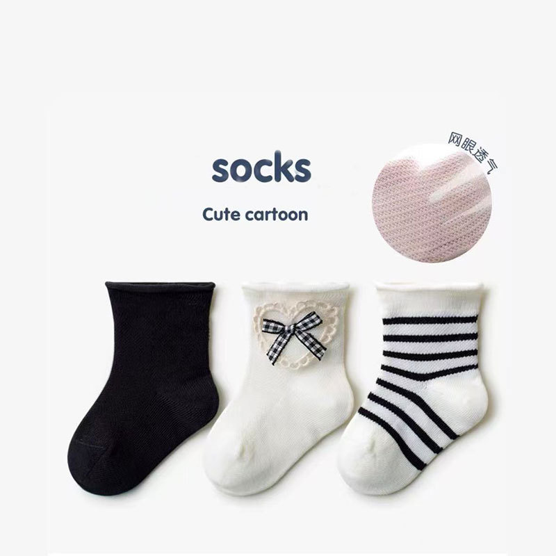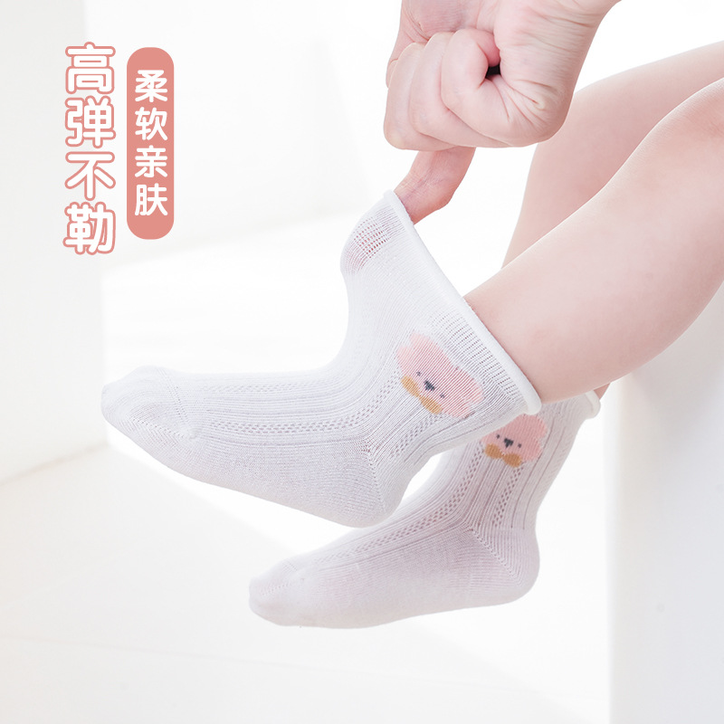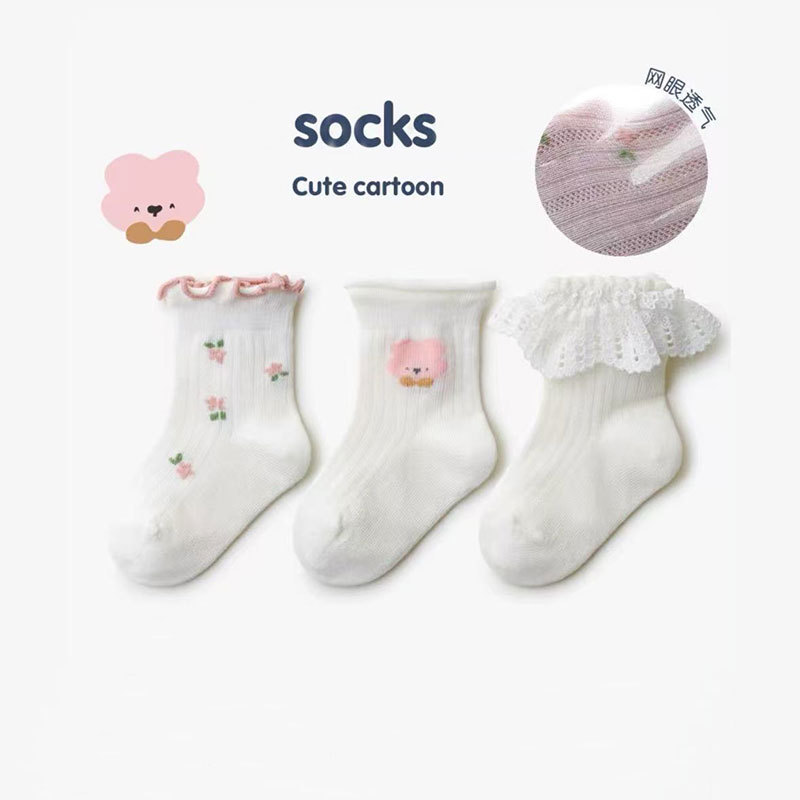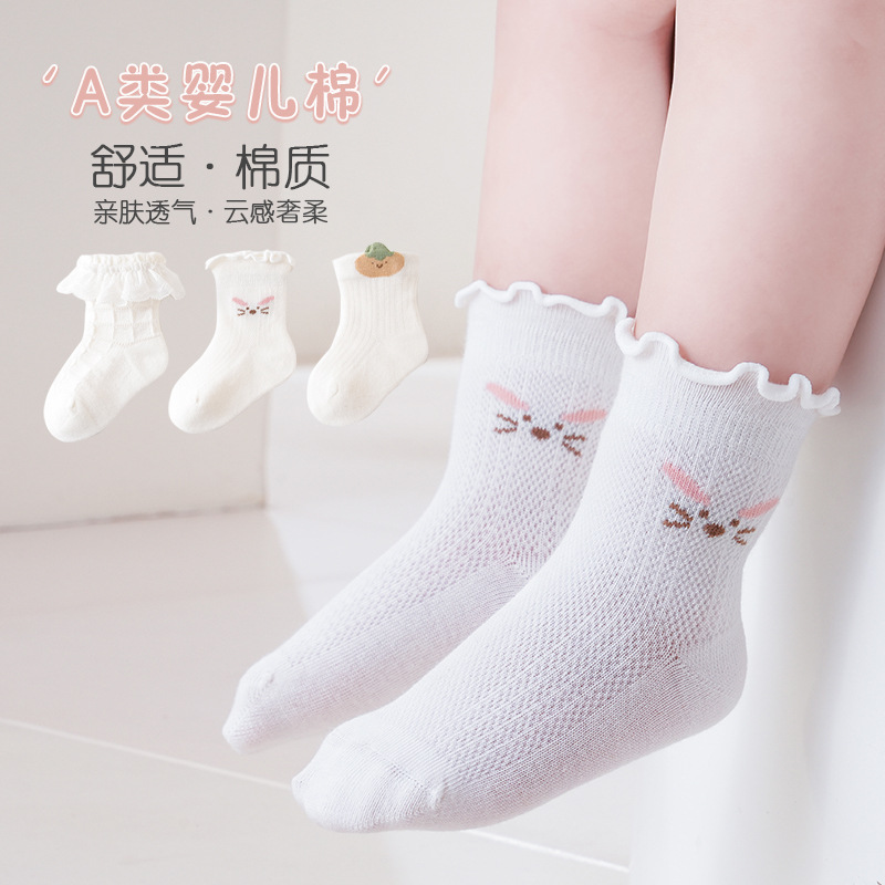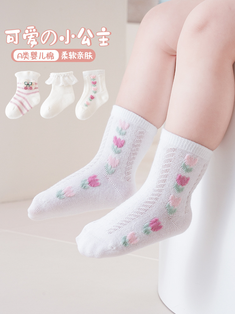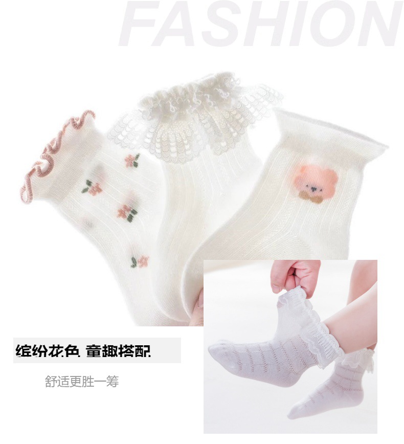 신생아 유아 봄과 가을 여름 얇은 메쉬 통기성 화이트 비 다리 뼈 양말 아기 소녀 레이스 공주 양말