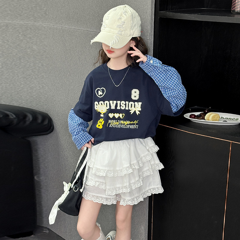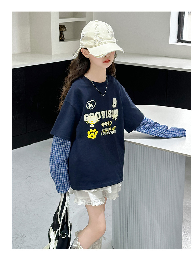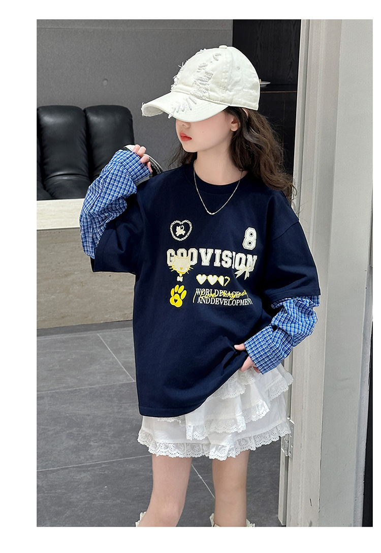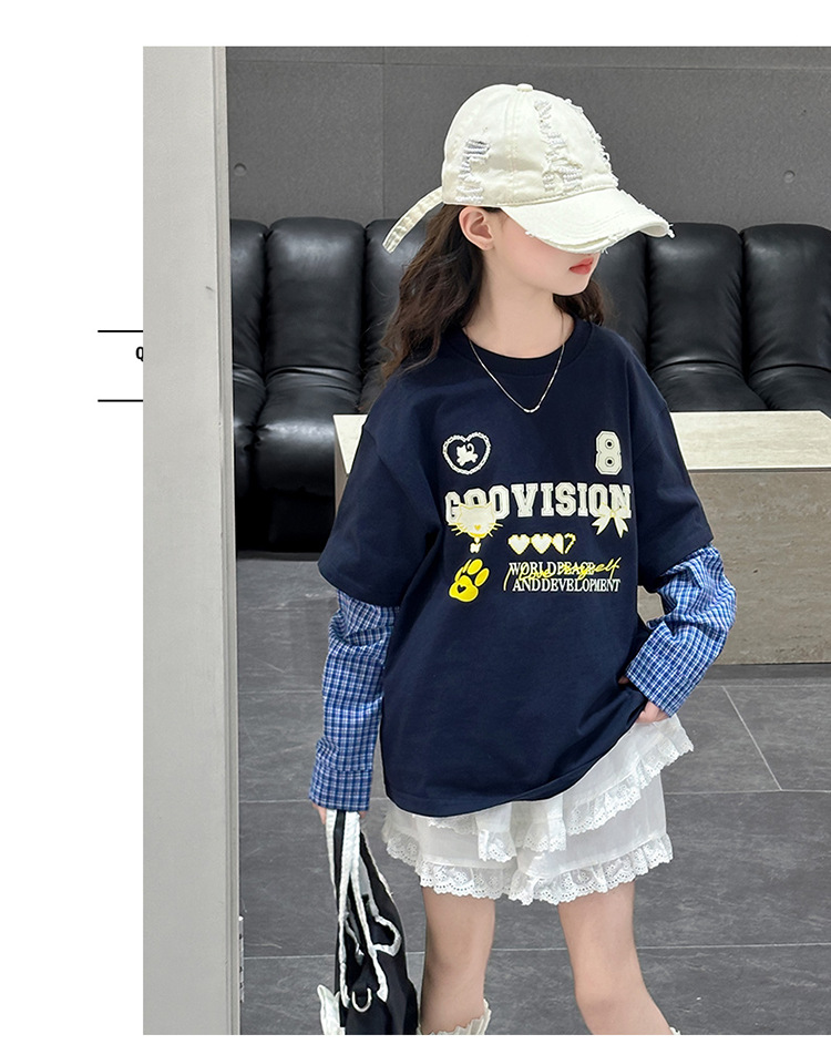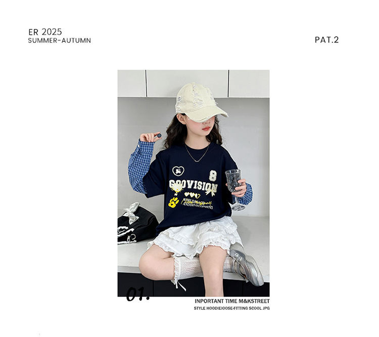 소녀 봄 가을 2025 새로운 어린이 봄 옷 튀긴 거리 가짜 2 피스 큰 아이들을위한 걸의 유행 옷스토어 가기