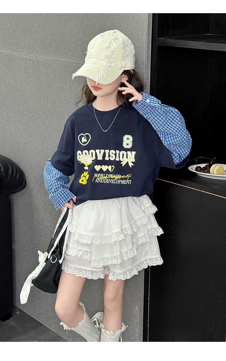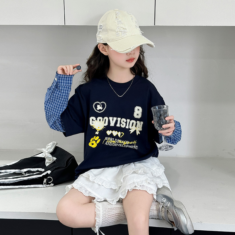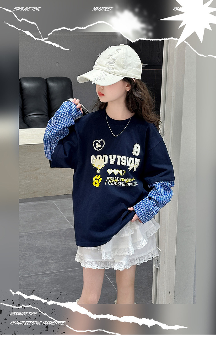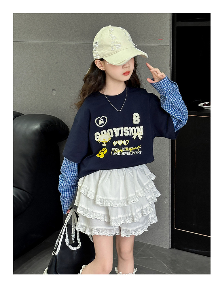 소녀 봄 가을 2025 새로운 어린이 봄 옷 튀긴 거리 가짜 2 피스 큰 아이들을위한 걸의 유행 옷스토어 가기