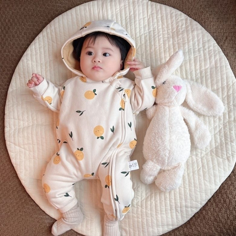• 병아리 긴팔 점프수트 (모자가 달린 단층 스타일)