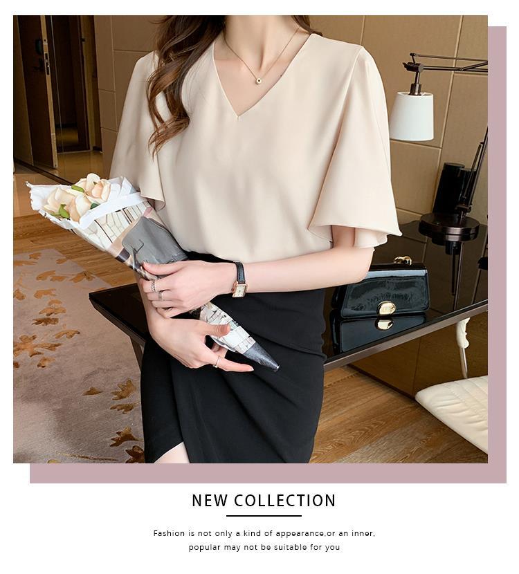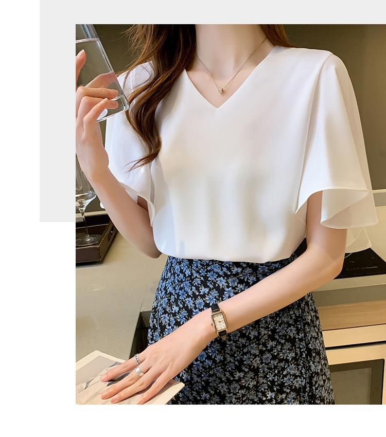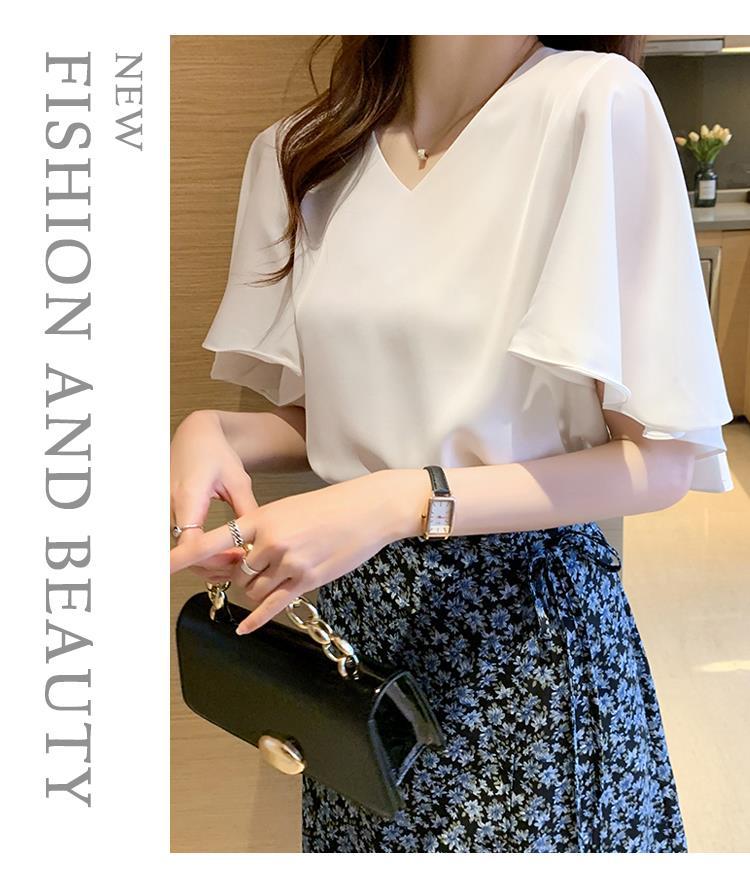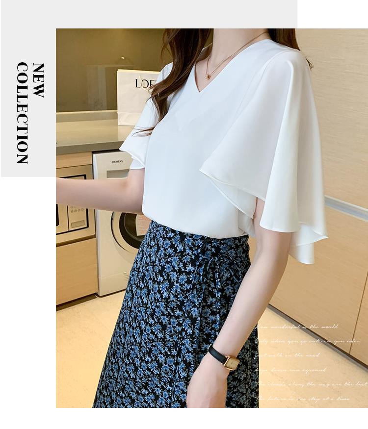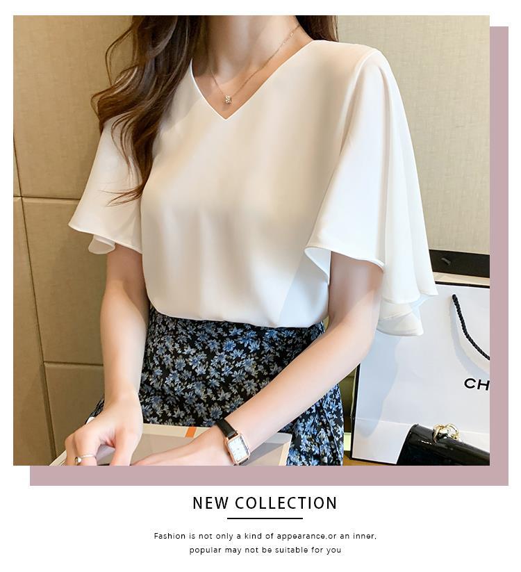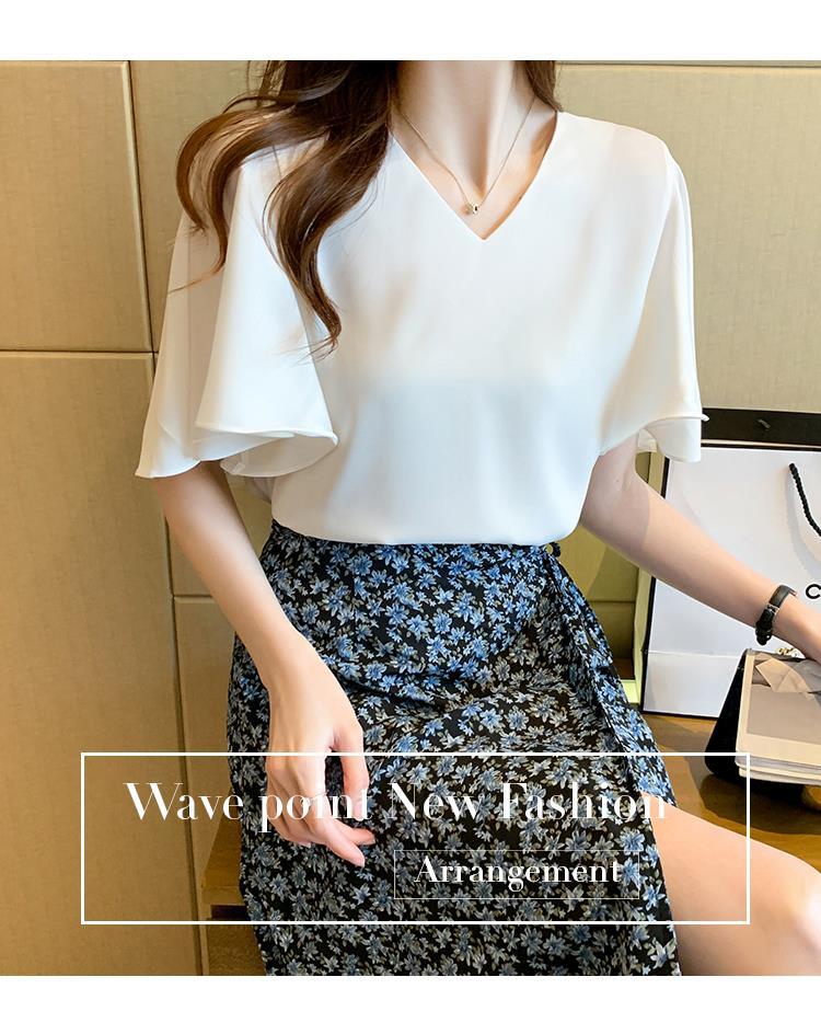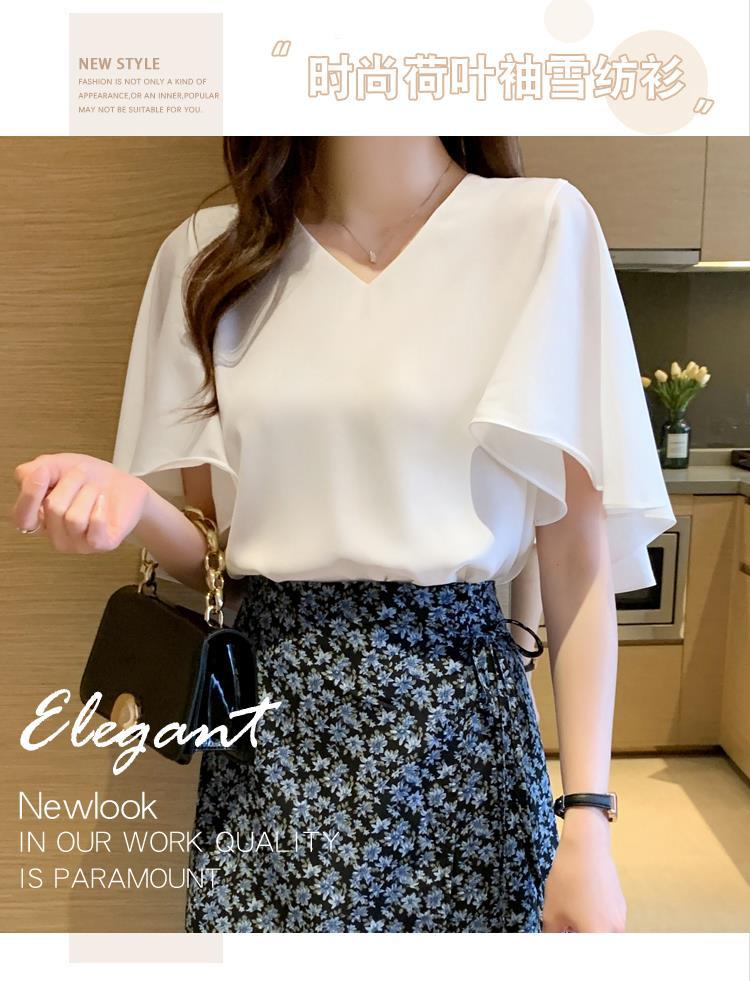 연꽃 잎 소매 V 넥 여성 셔츠 여름 새로운 스타일 한국 패션 디자인 감각 캐주얼 대외 무역 탑 연령 감소스토어 가기