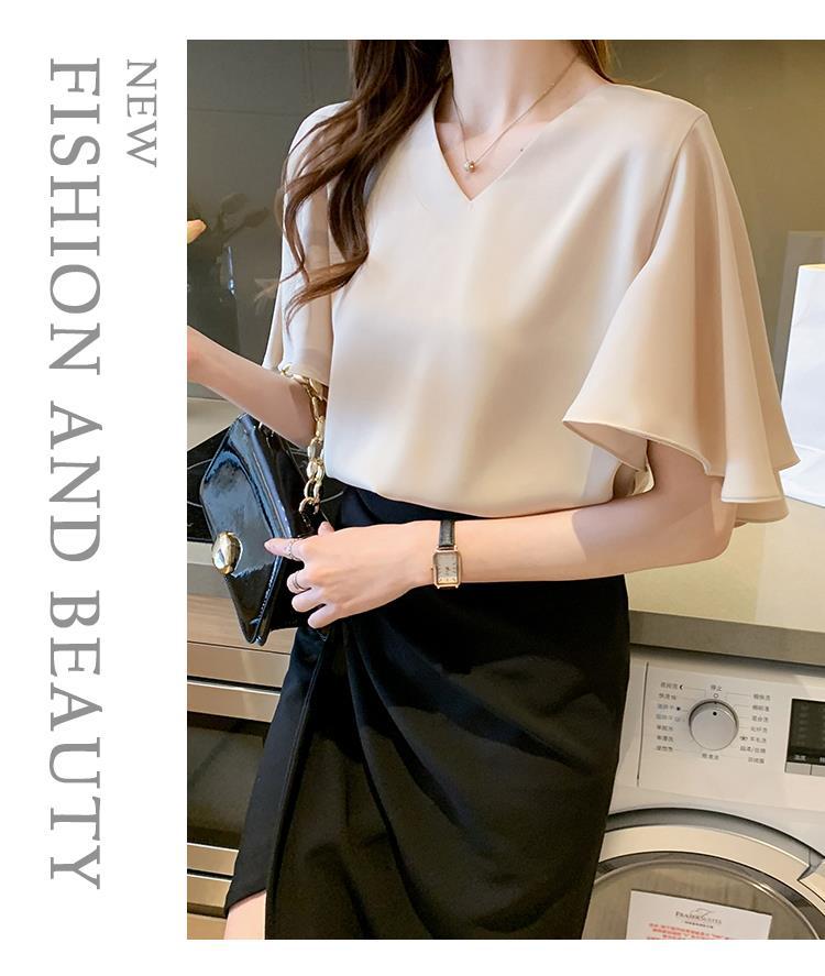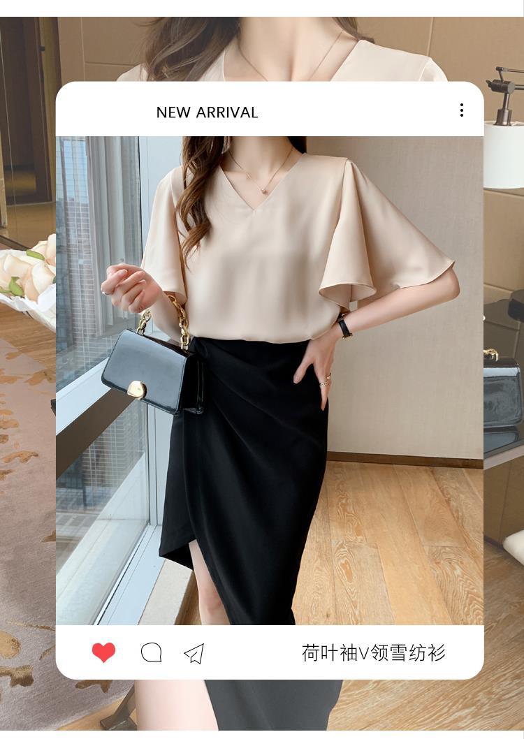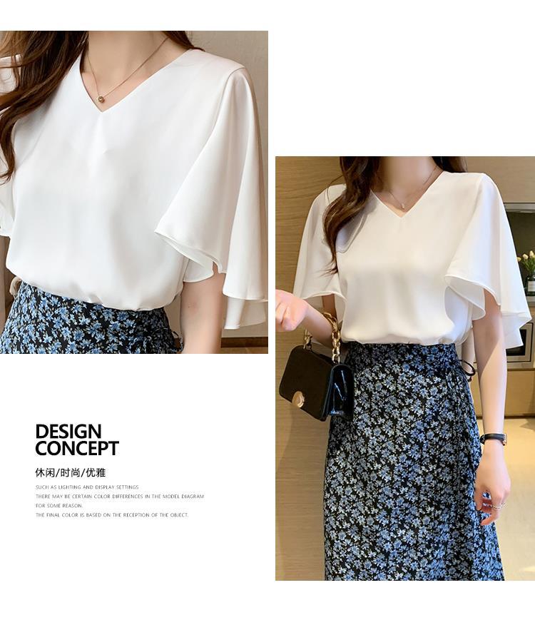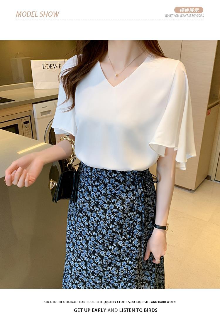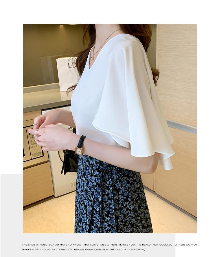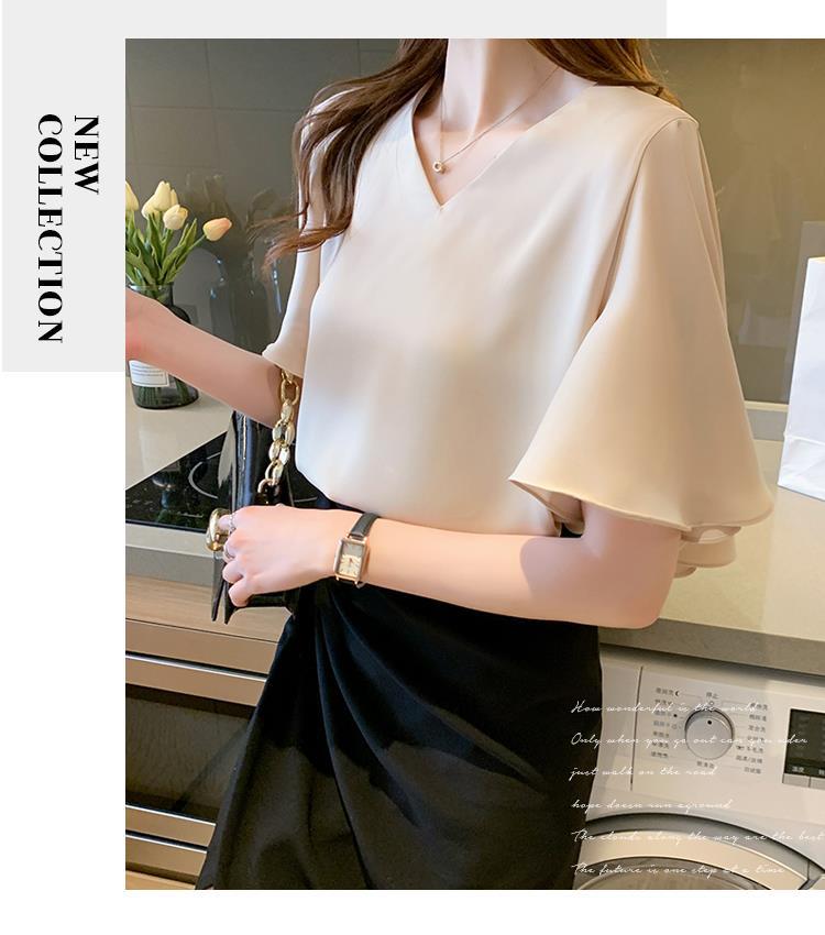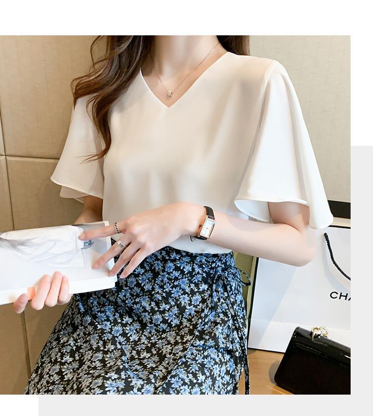 연꽃 잎 소매 V 넥 여성 셔츠 여름 새로운 스타일 한국 패션 디자인 감각 캐주얼 대외 무역 탑 연령 감소스토어 가기