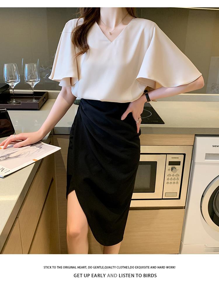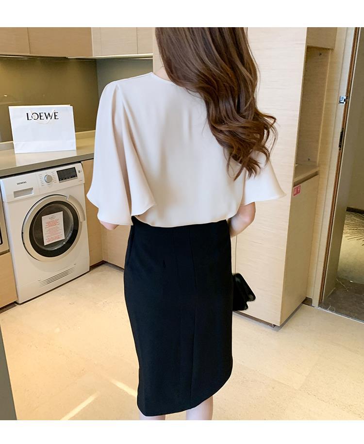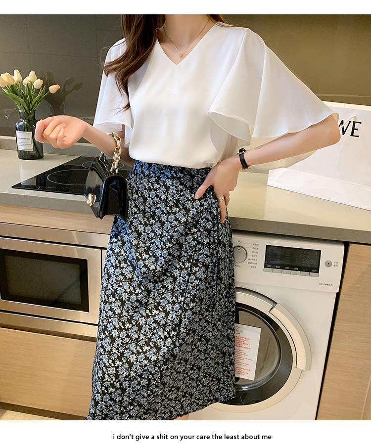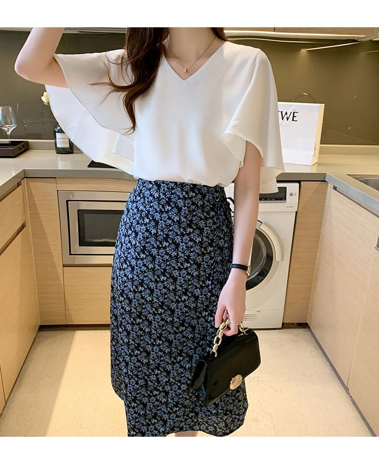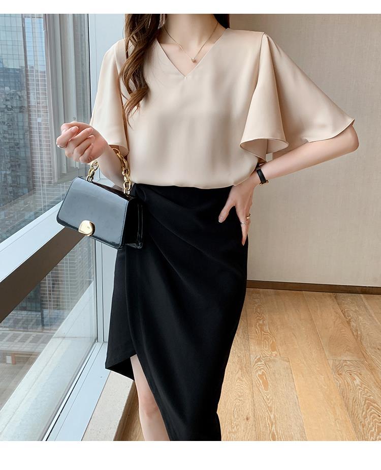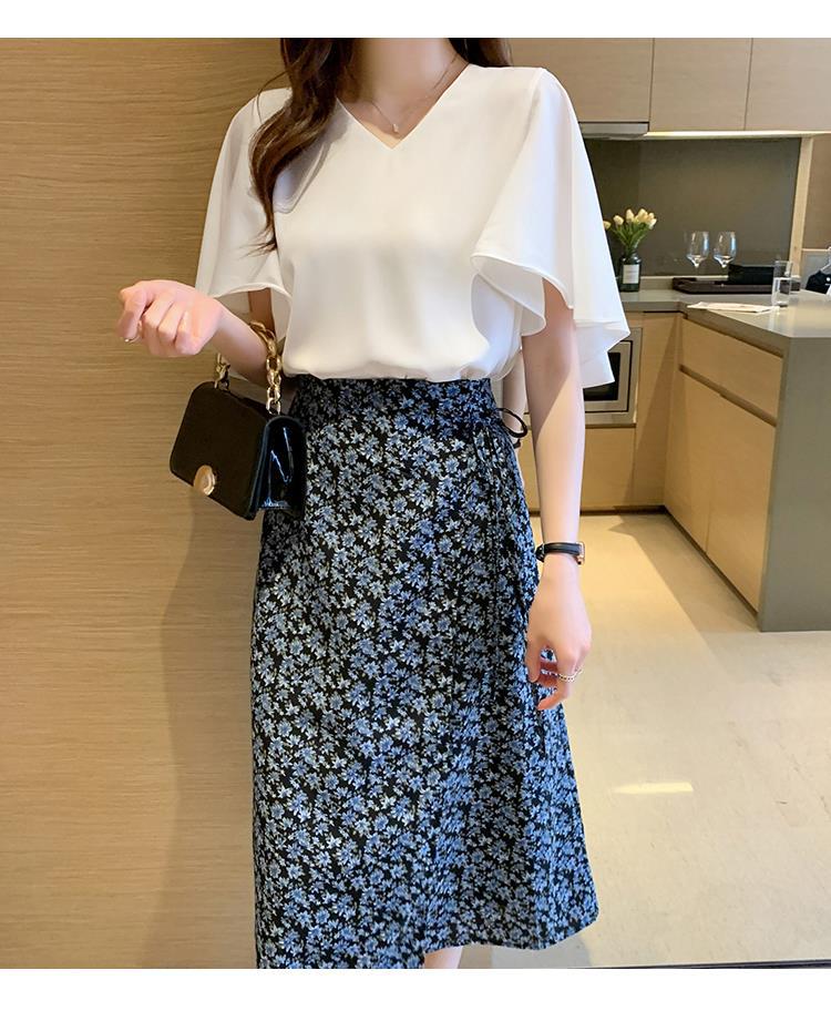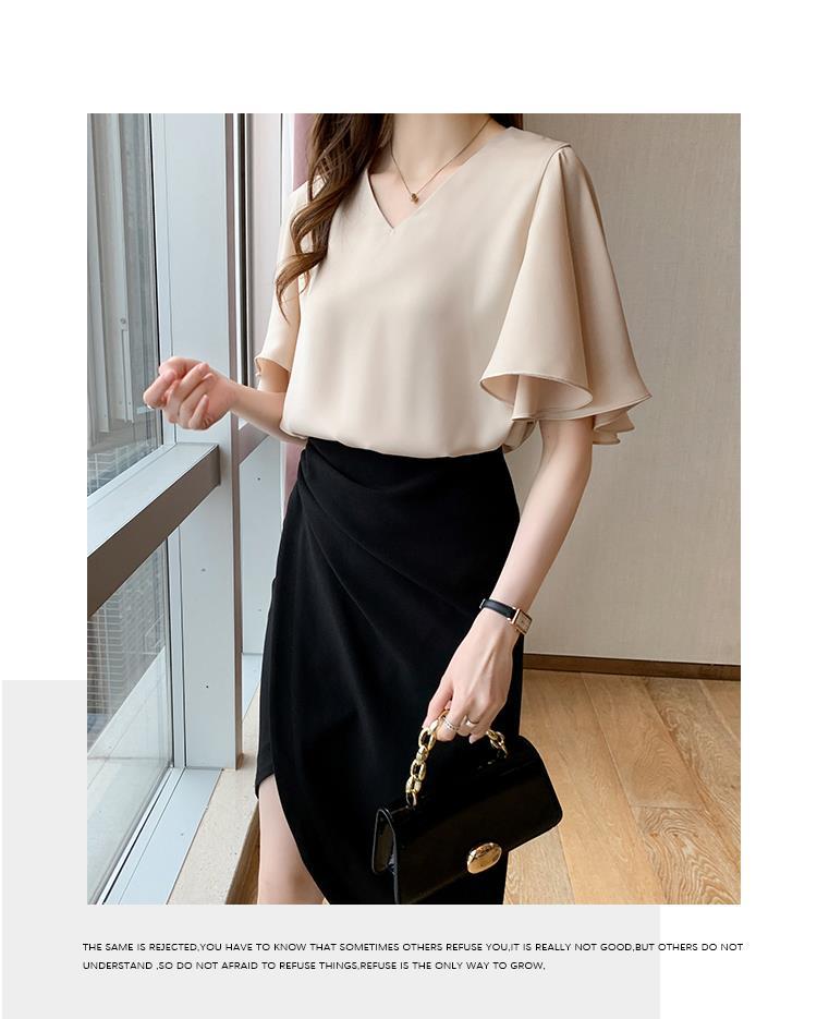 연꽃 잎 소매 V 넥 여성 셔츠 여름 새로운 스타일 한국 패션 디자인 감각 캐주얼 대외 무역 탑 연령 감소스토어 가기