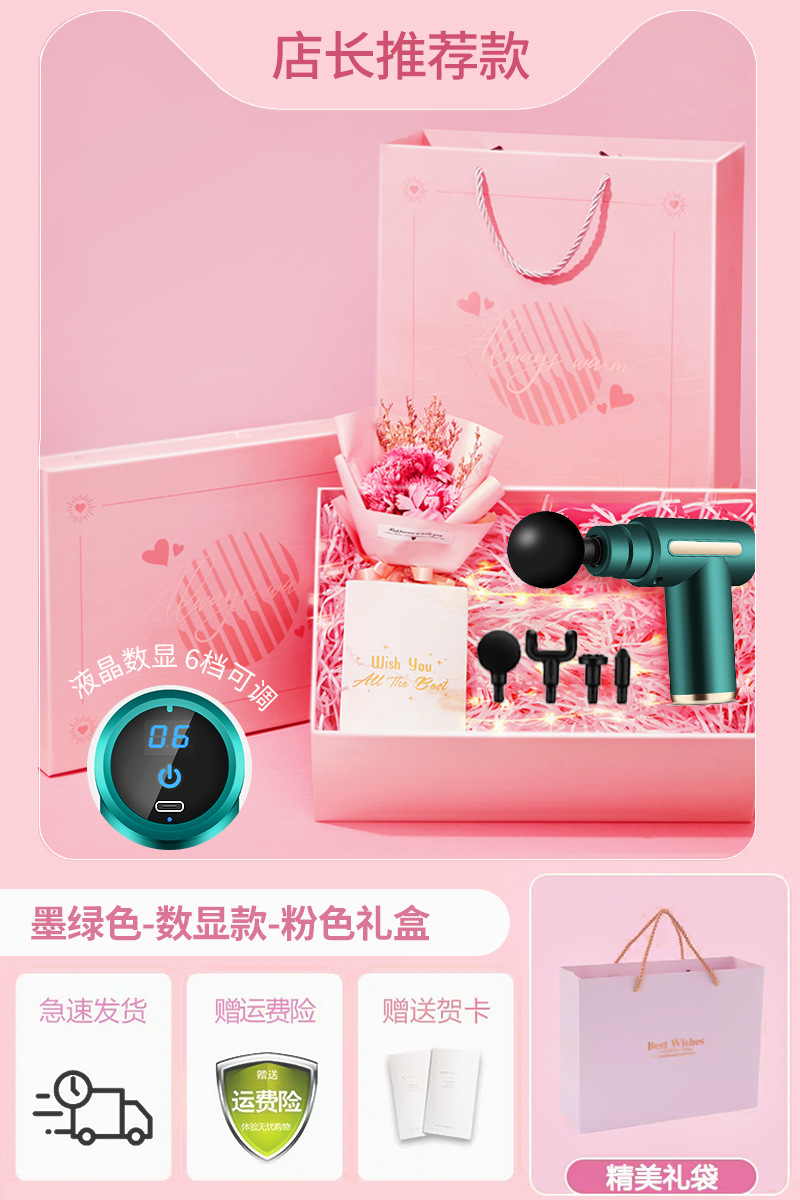 • ♥엄마에게 보내기♥디지털 디스플레이 모델 [진한 녹색] 마사지 헤드 4개 + 핑크색 선물 상자