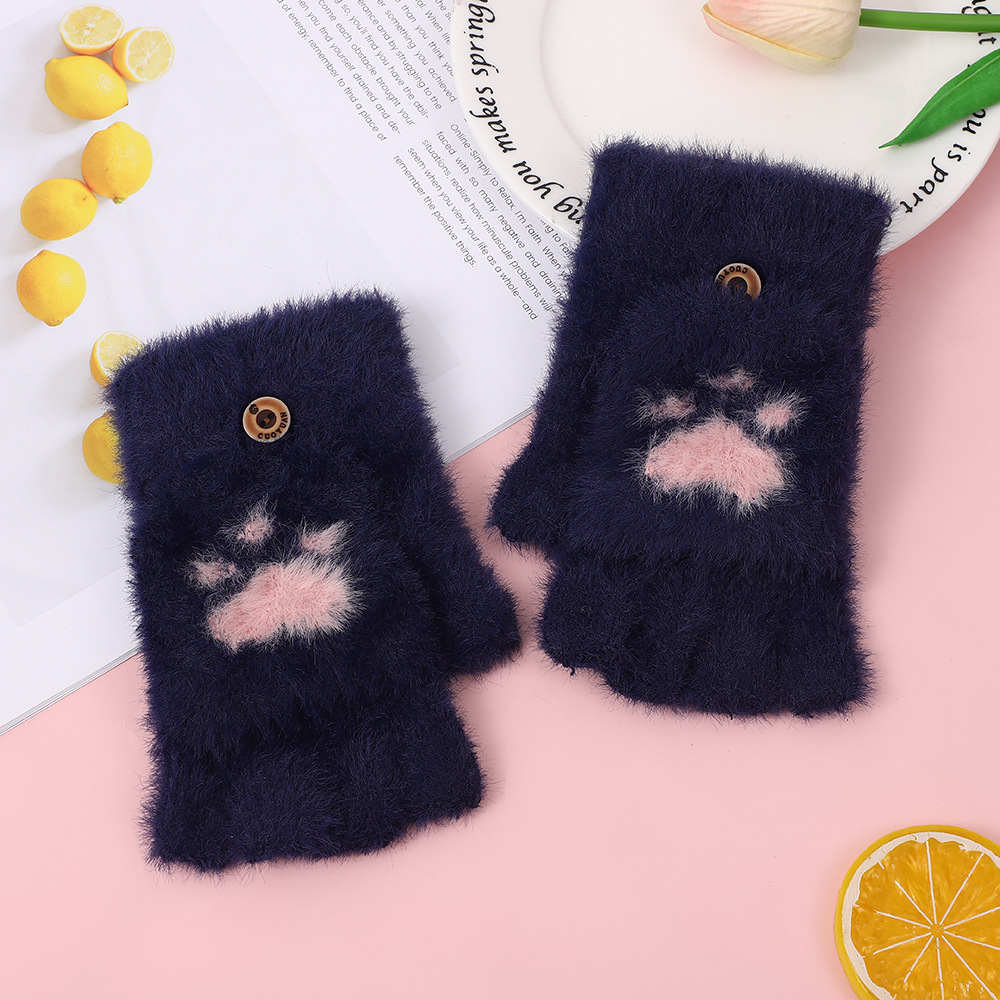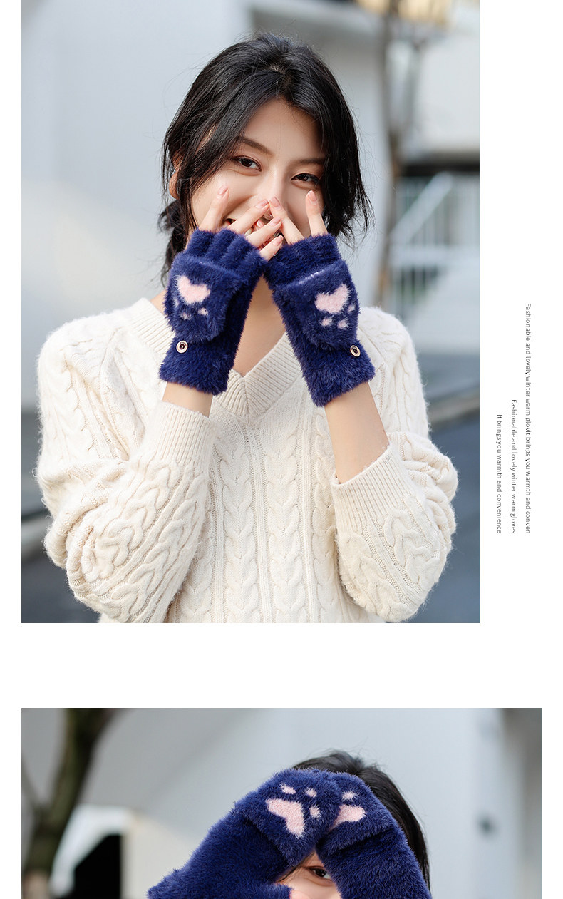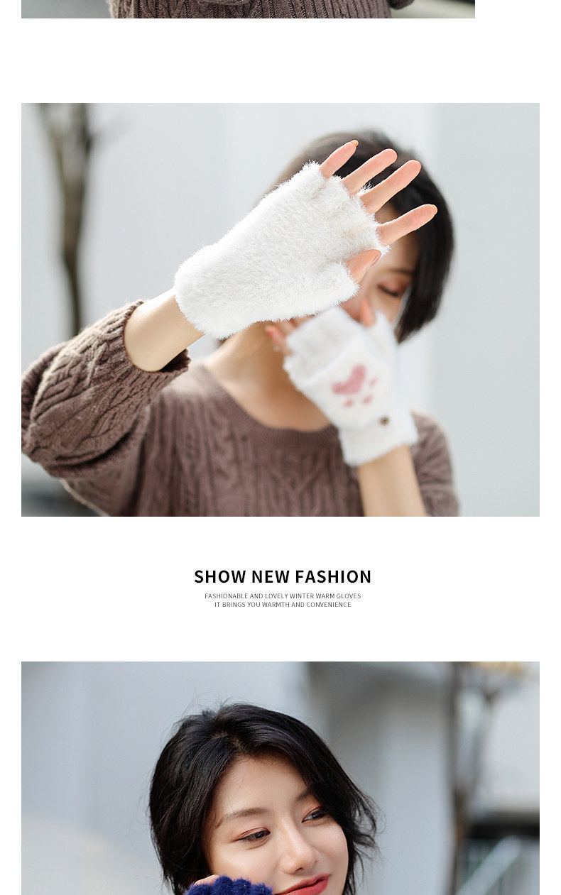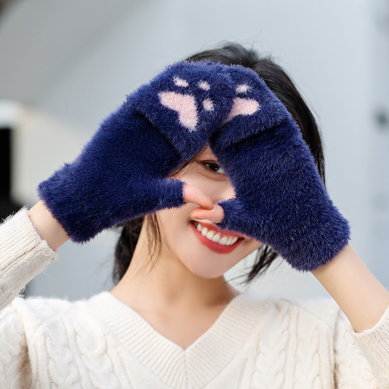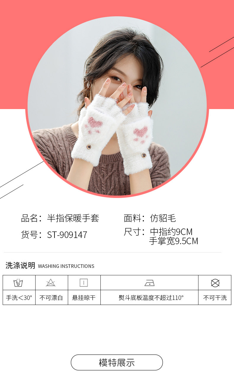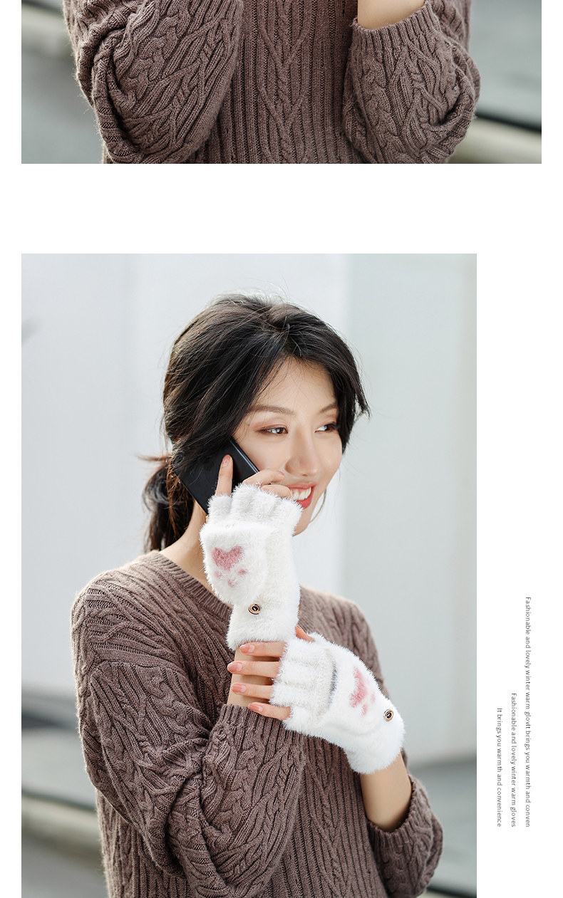 플립 커버 오픈 핑거 장갑 여성의 겨울 귀여운 한국식 만화 반 손가락 니트 울 기모 가을과 겨울 학생 따뜻한