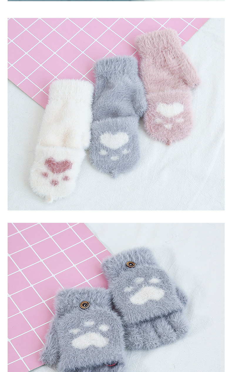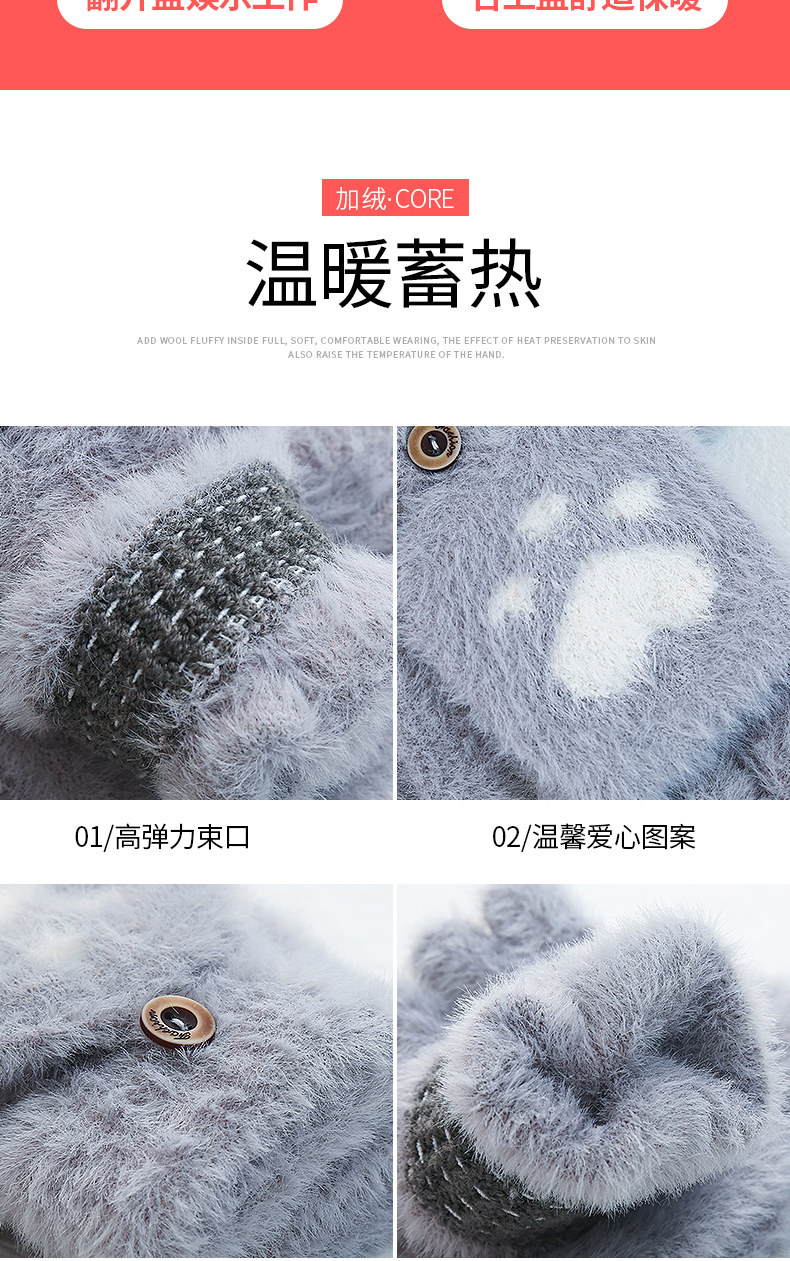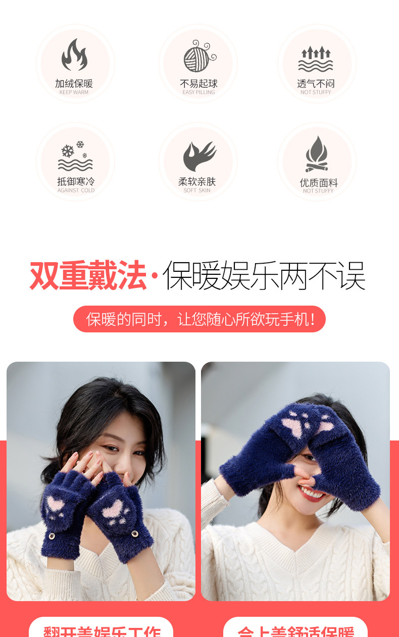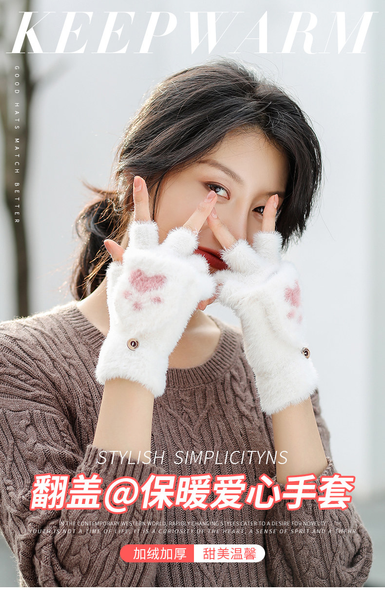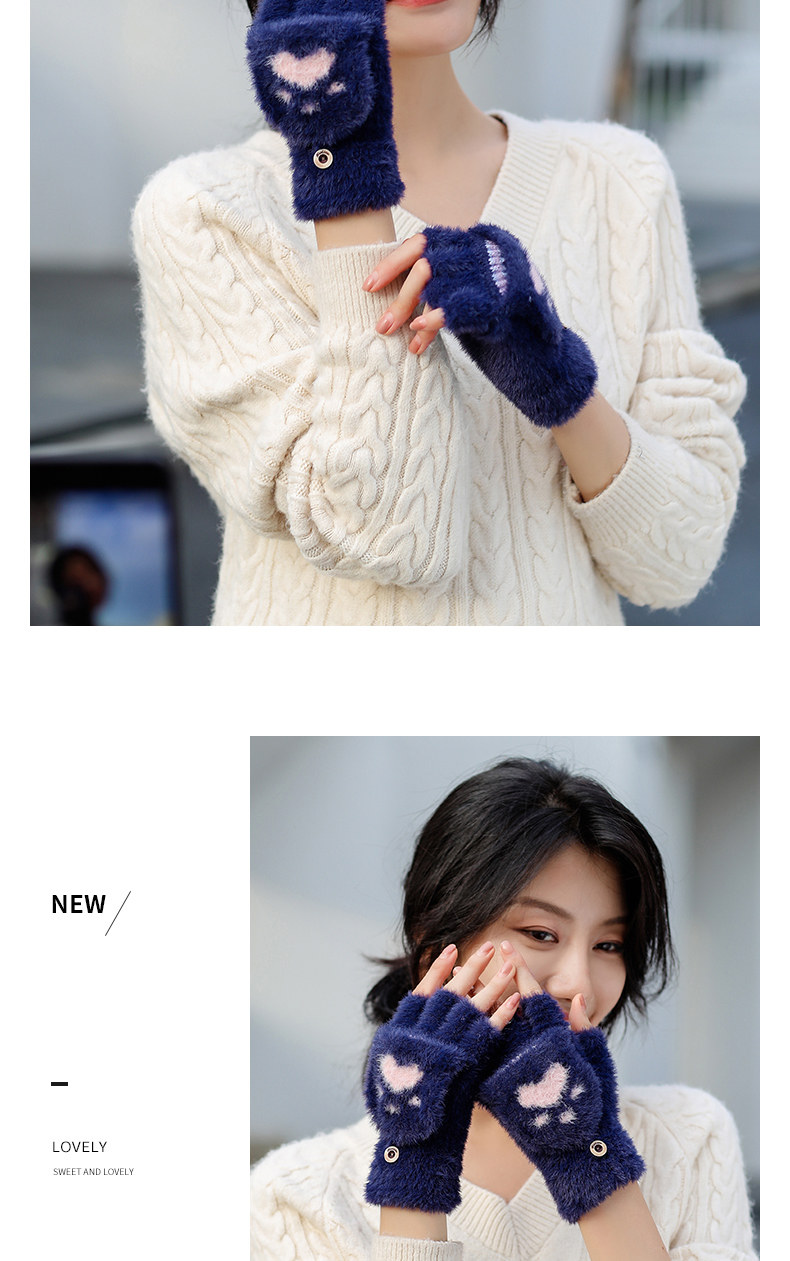 플립 커버 오픈 핑거 장갑 여성의 겨울 귀여운 한국식 만화 반 손가락 니트 울 기모 가을과 겨울 학생 따뜻한스토어 가기