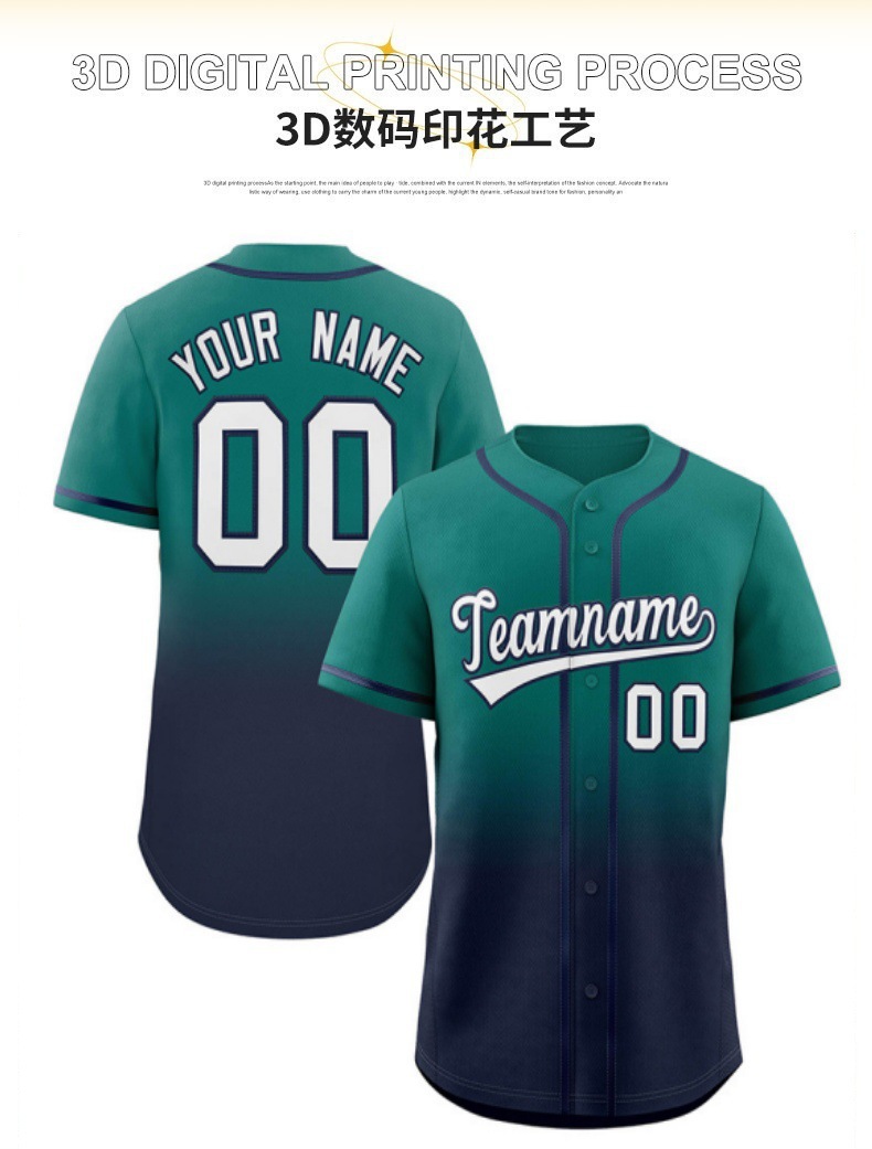 2024 국경 아마존 여름 새로운 스포츠 남성 여성 어린이 야구 유니폼 캐주얼 그라디언트 3D 인쇄
