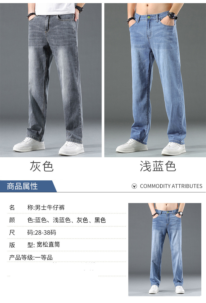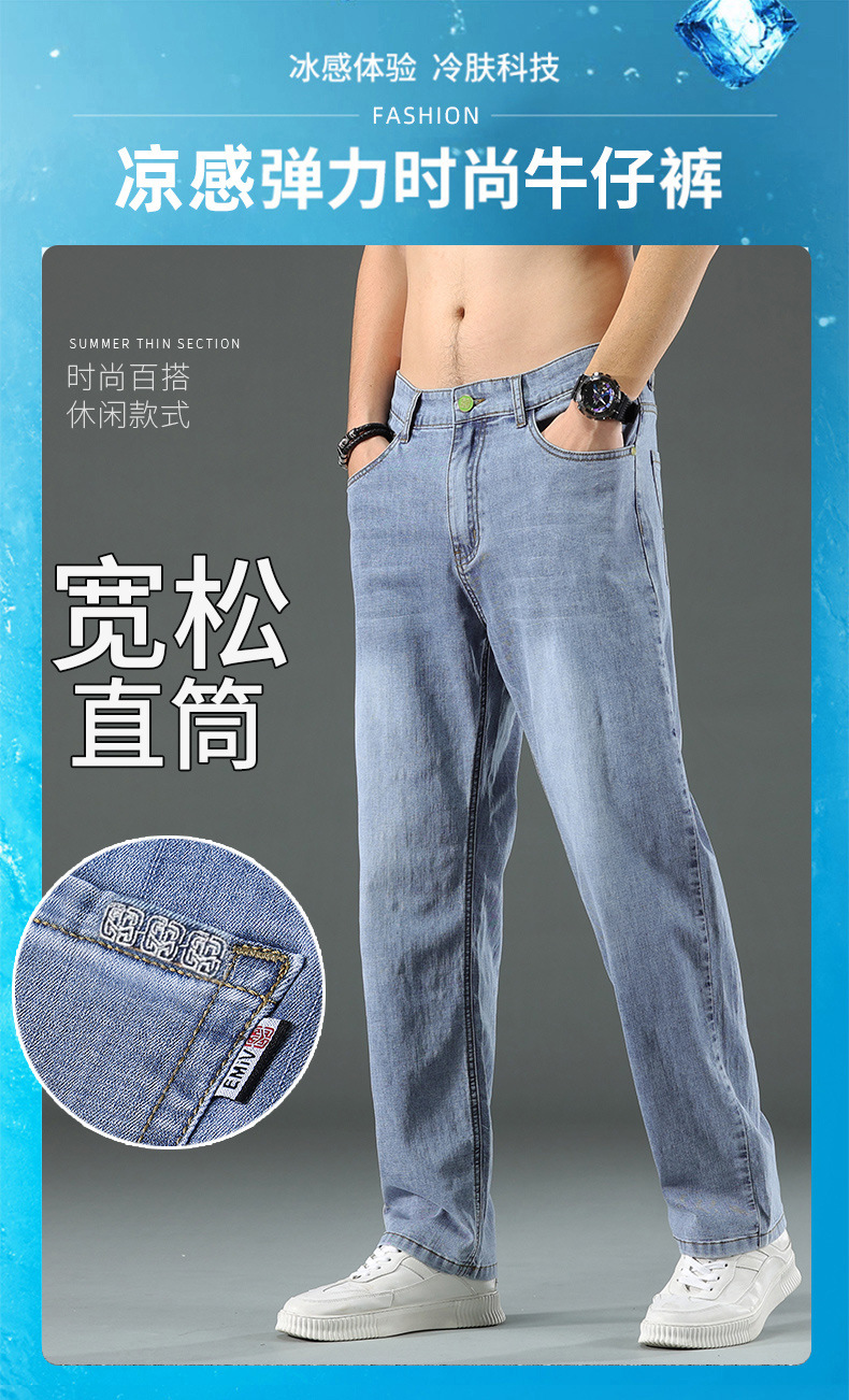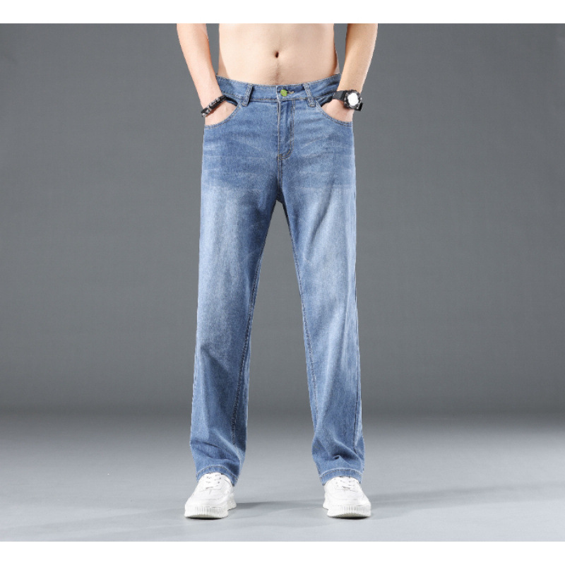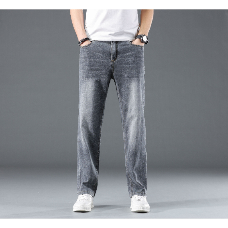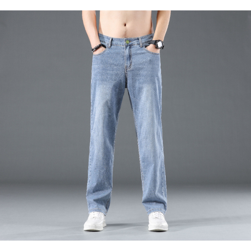 2025 여름 얇은 남성 청바지 느슨한 스트레이트 유행 브랜드 봄과 가을 캐주얼 긴 바지 남성 플러스 사이즈