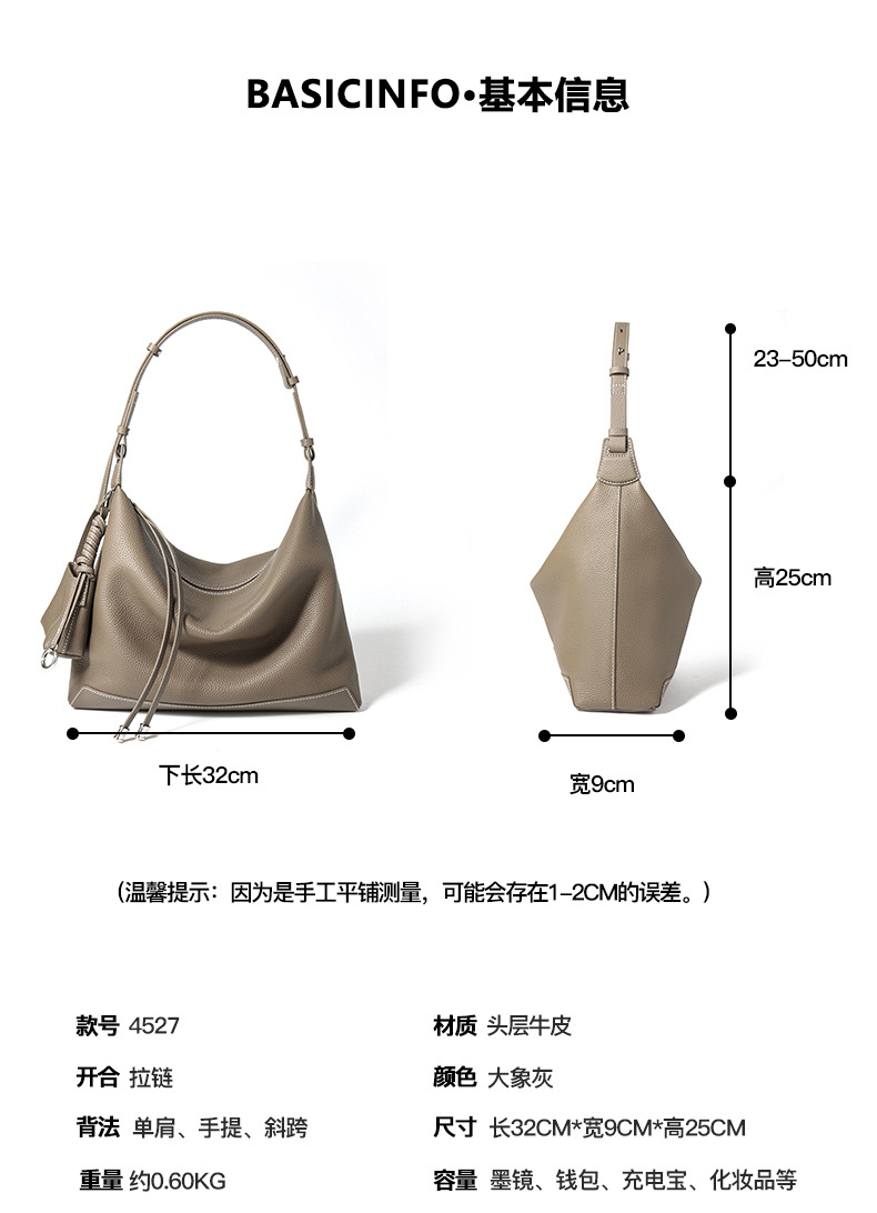 가방 한국 틈새시장 인기 판매 여성용 숄더백 겸 겨드랑이 크로스백, 대용량 토트백, 고급 천연가죽 여성용 가방스토어 가기