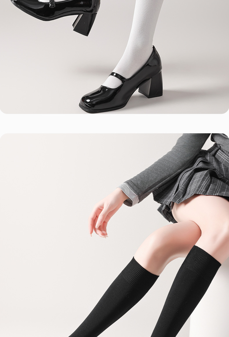 단색 종아리 양말 여성 압력 얇은 다리 양말 면 양말 jk 양말 블랙 대학 스타일 숙녀 양말 조수 스타킹