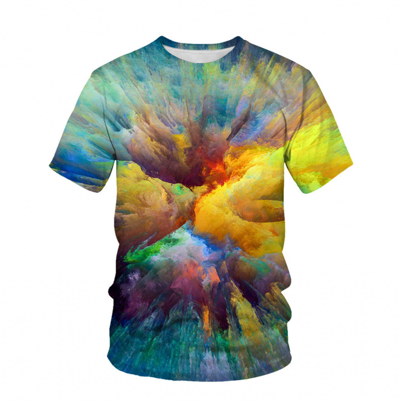 여름 유럽과 미국의 트렌드 새로운 짧은 T 거리 힙합 요소 3D 인쇄 디지털 인쇄 남성과 여성의 캐주얼 짧은 소매