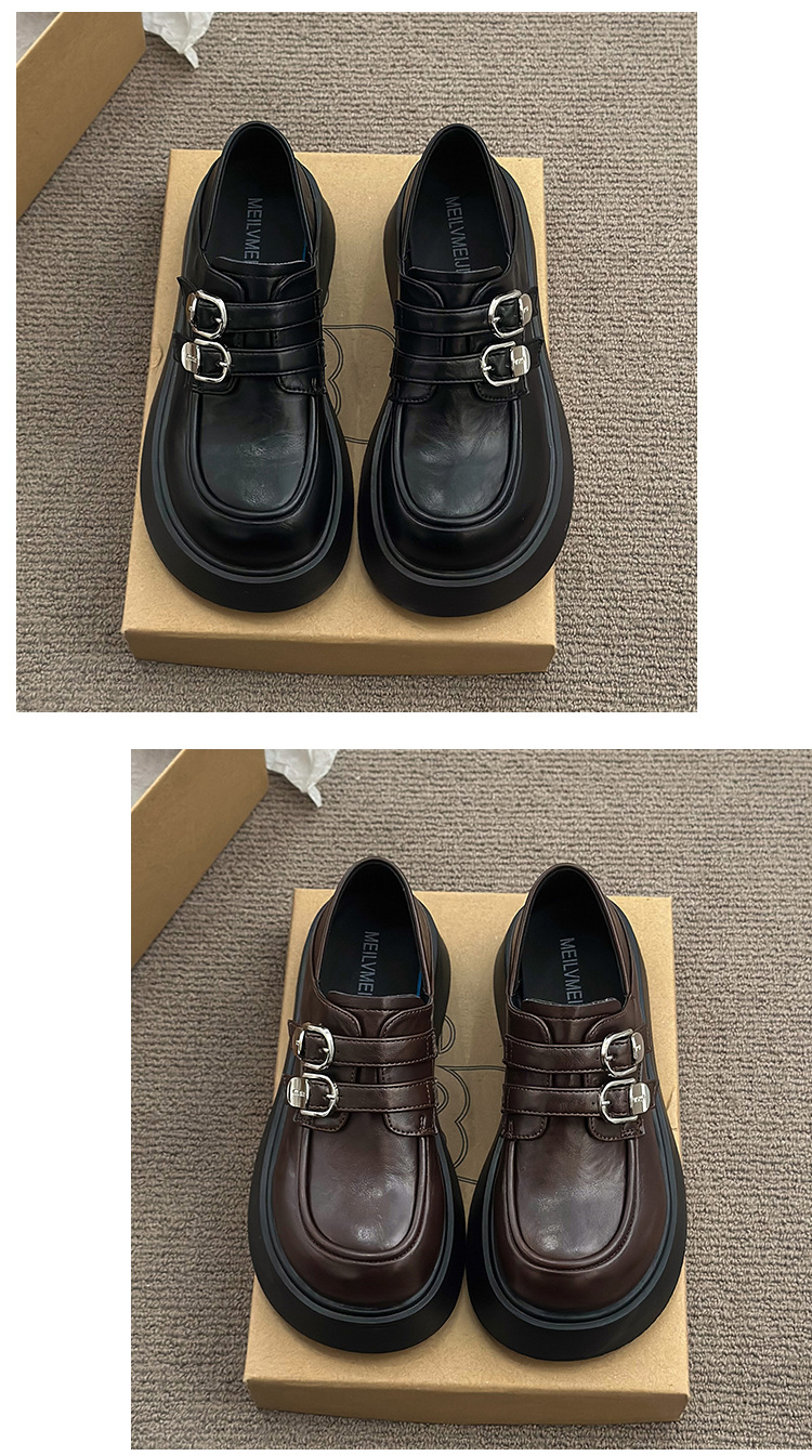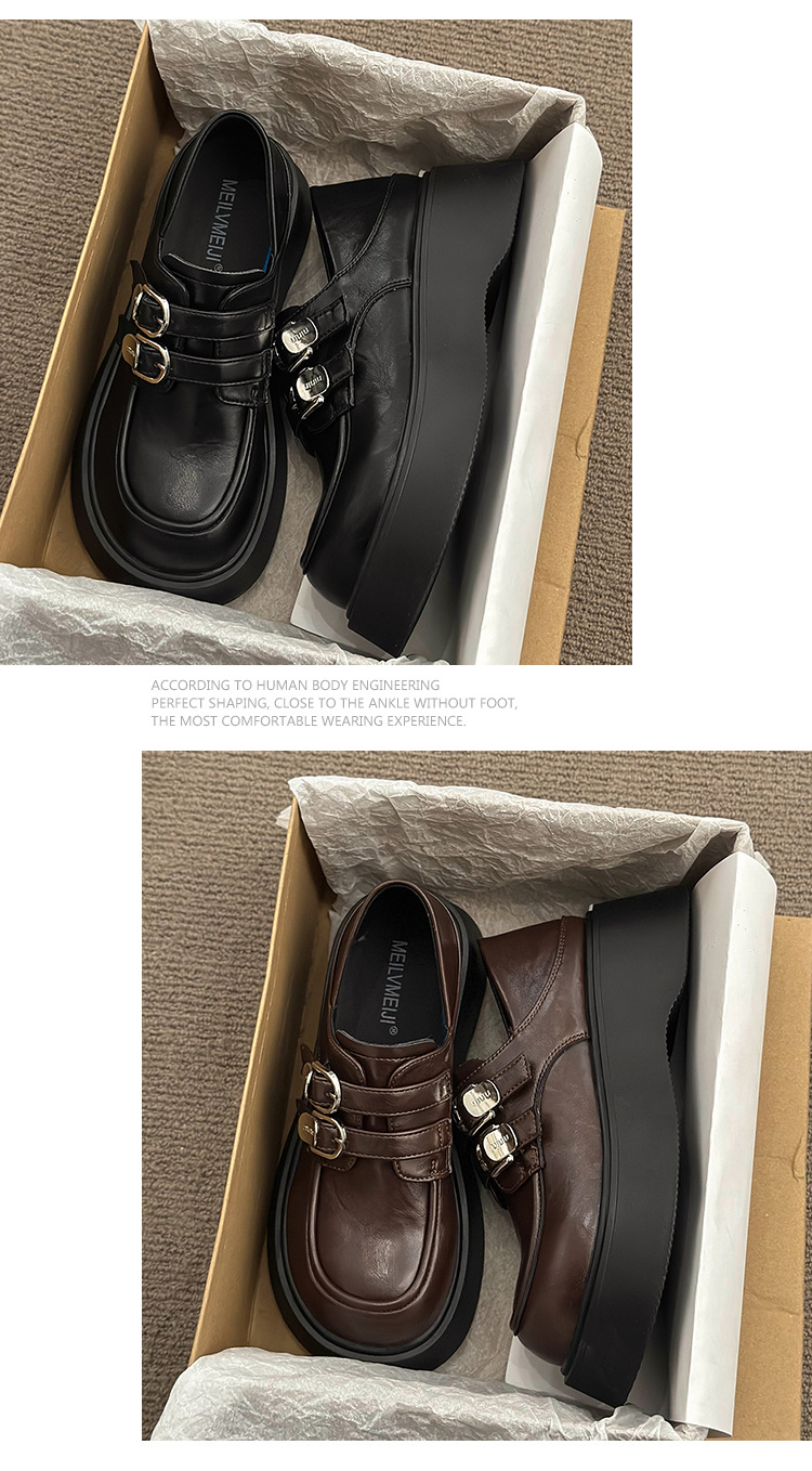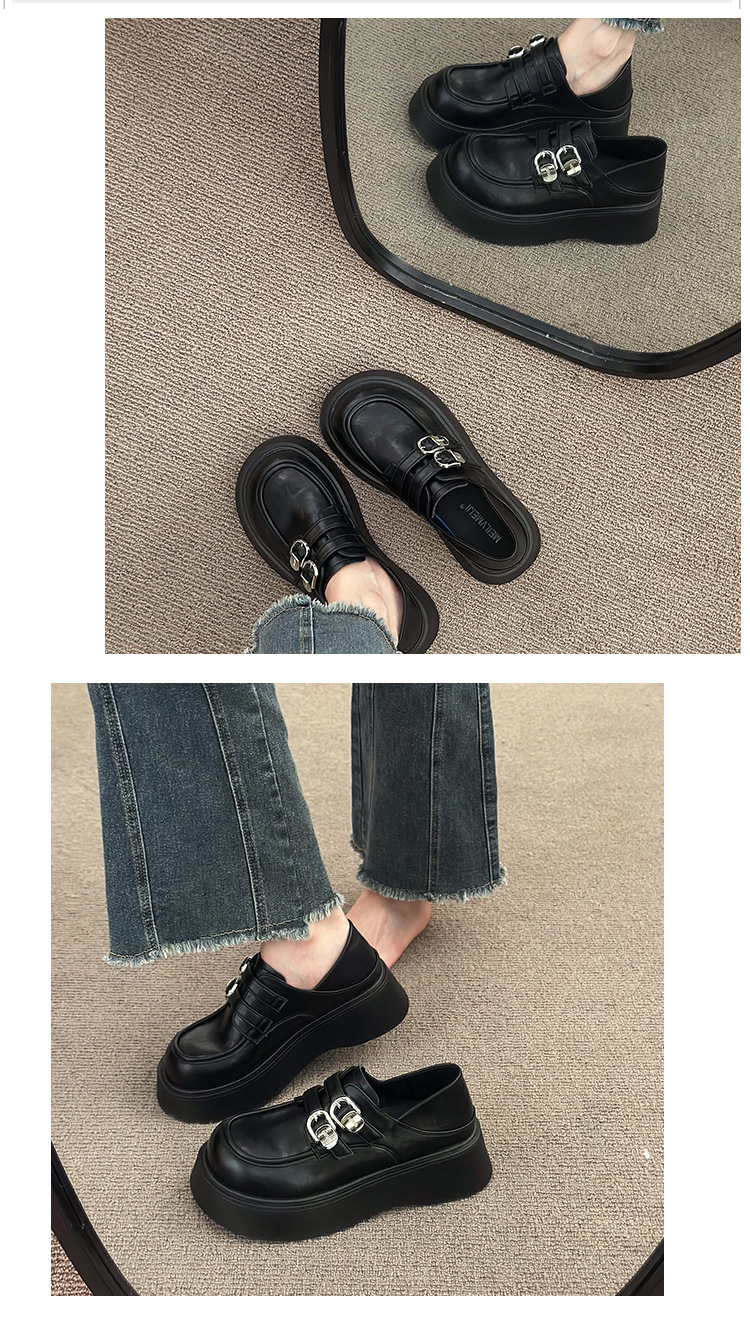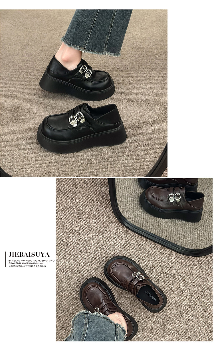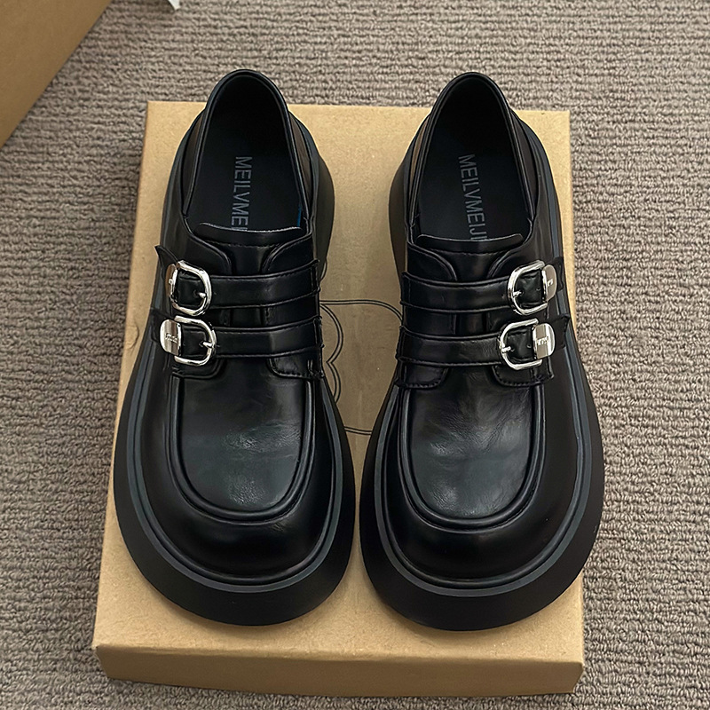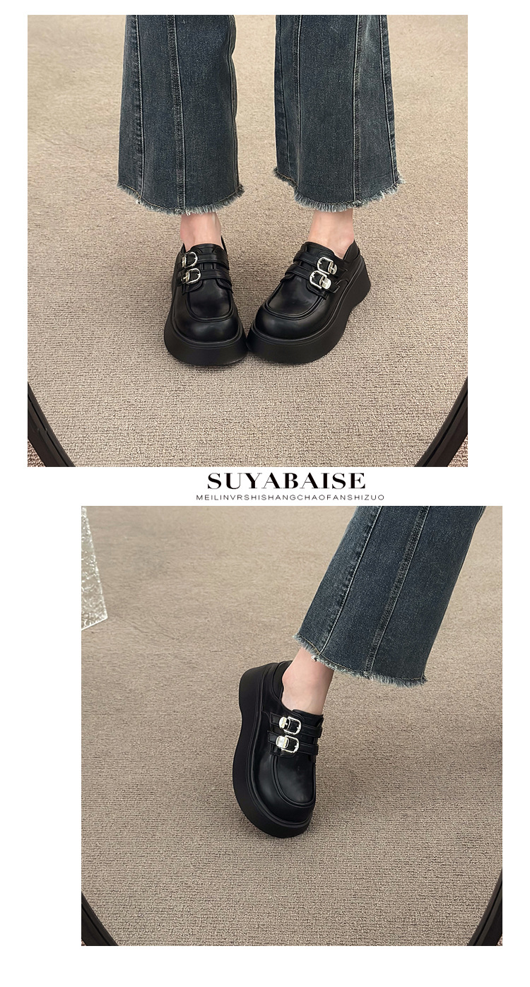 블랙 영국 스타일 하이힐 플랫폼 가죽 신발 여성의 2025 년 새로운 여름 프랑스 스타일 올 매치 레트로 높이 증가 로퍼스토어 가기