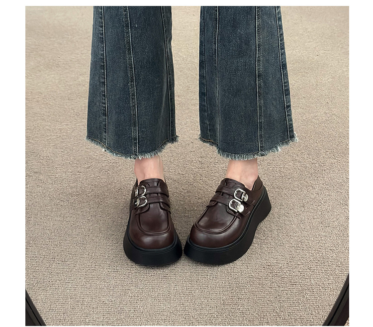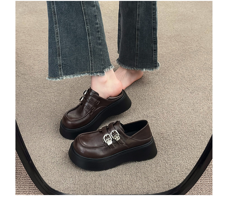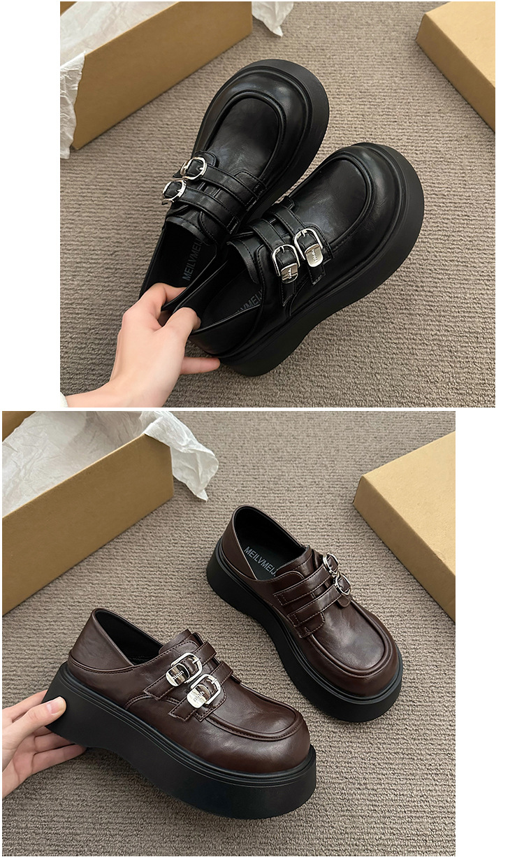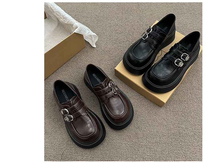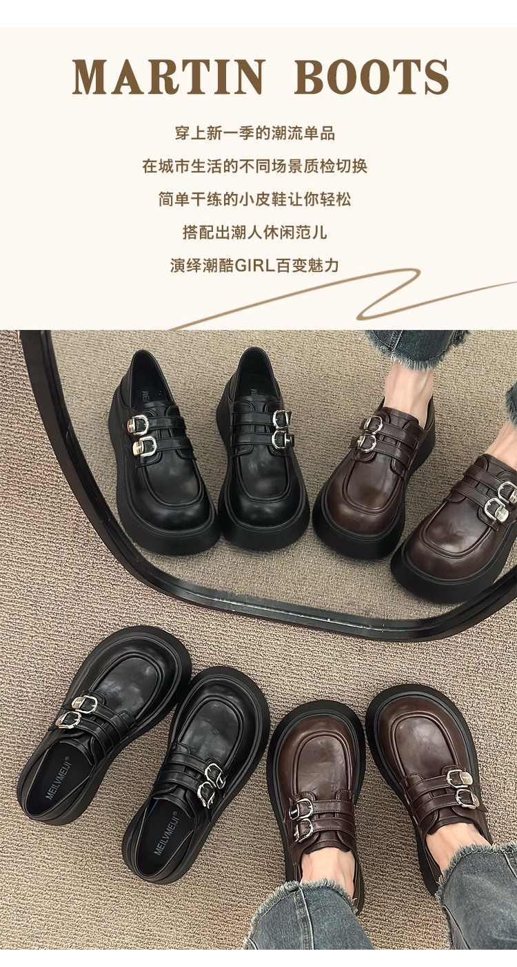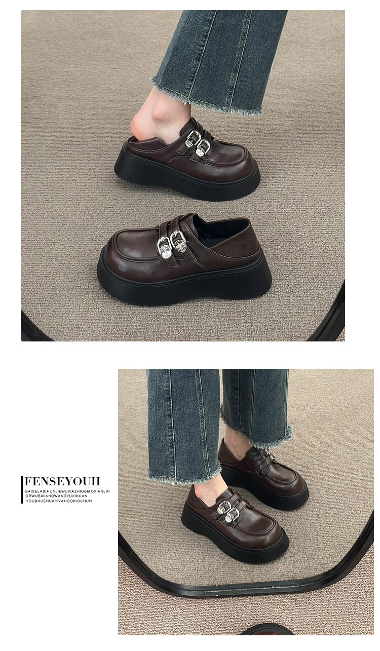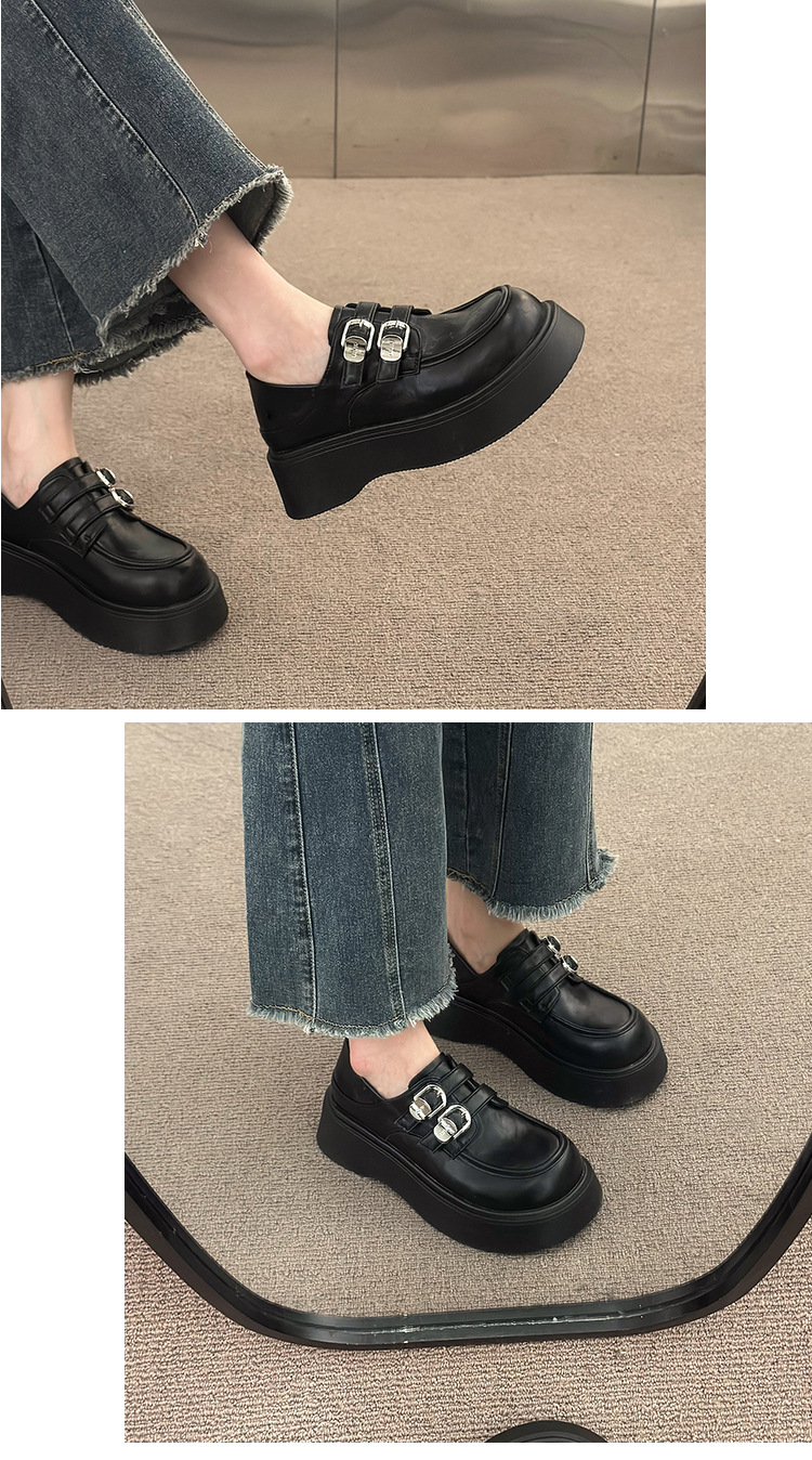 블랙 영국 스타일 하이힐 플랫폼 가죽 신발 여성의 2025 년 새로운 여름 프랑스 스타일 올 매치 레트로 높이 증가 로퍼스토어 가기