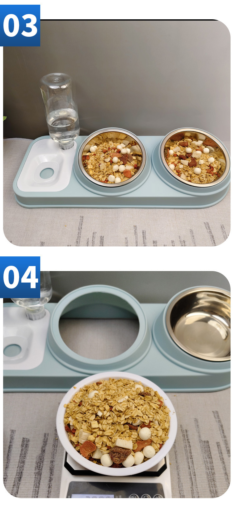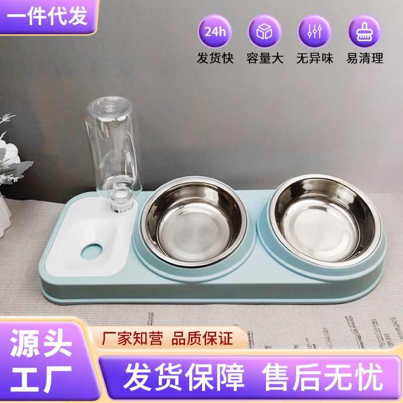 개 그릇 뒤집기 방지 개 그릇 고양이 그릇 세라믹 더블 그릇 보호 자궁 경부 자동 마시는 고양이 먹이 고양이 그릇 국경스토어 가기