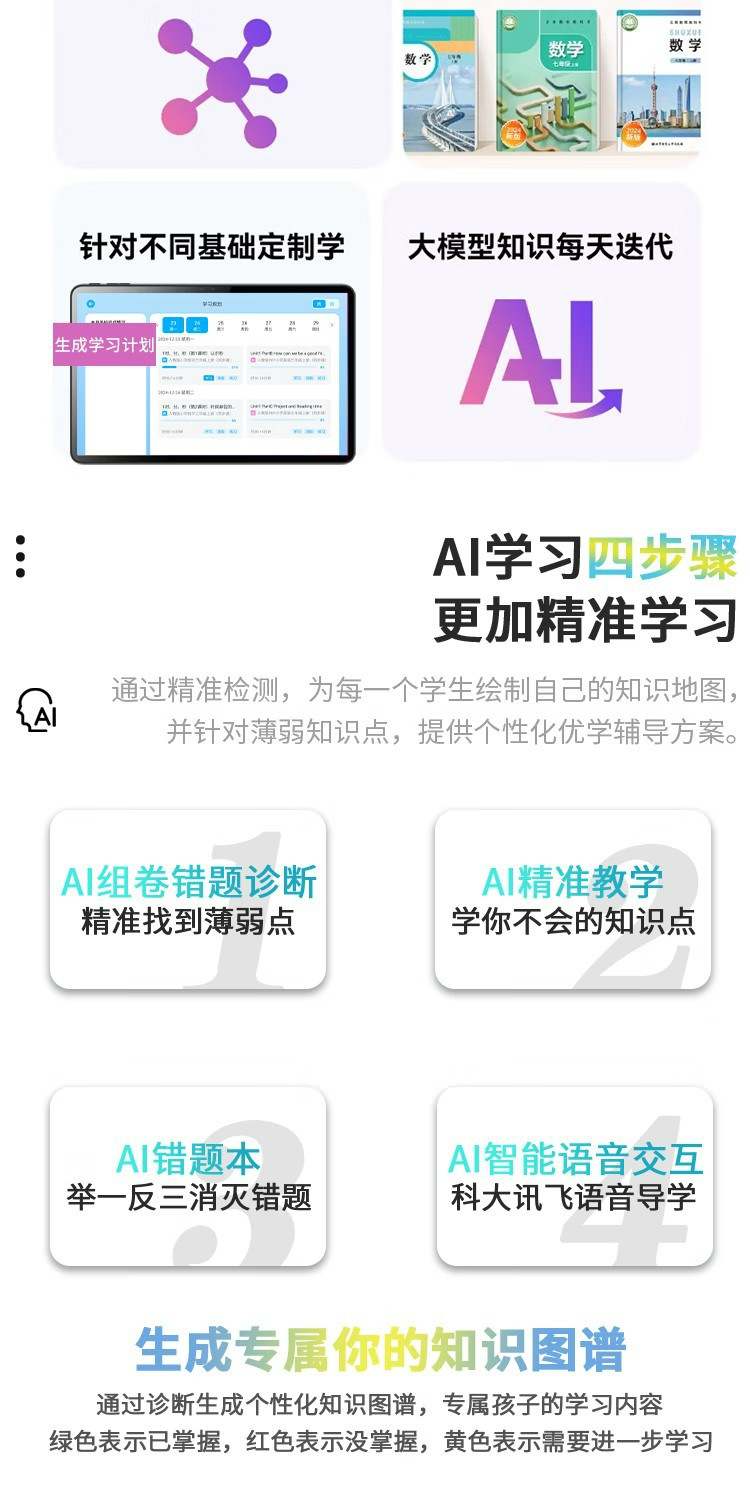 1:按客户需求个性化定制,AI精准学,AR指读,同步辅导,视频精讲,口语评测,新gai念等等资源定制。
