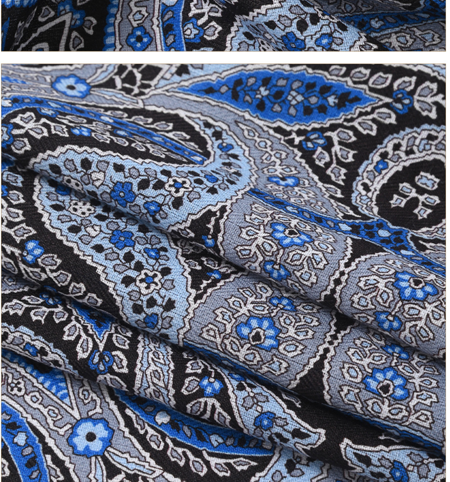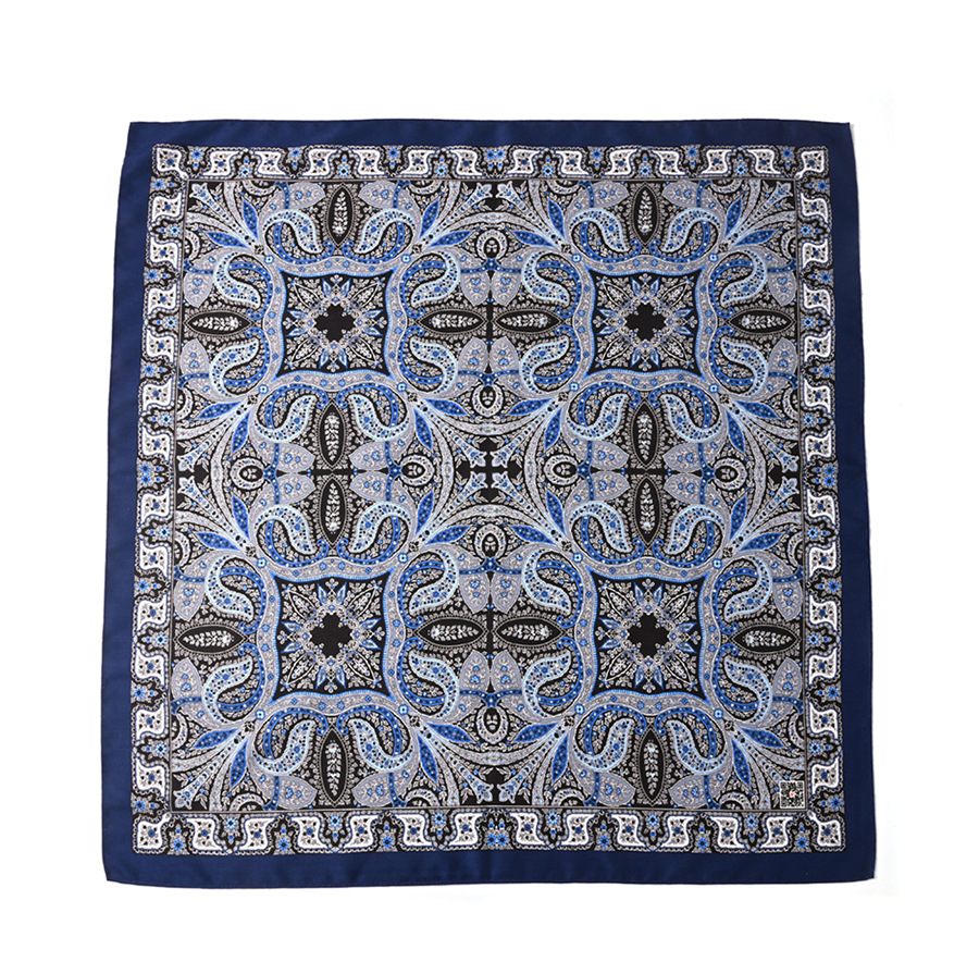 새로운 숙녀 푸른 염료 바람 양면 인쇄 발리 원사 큰 광장 스카프 빈티지 예술적 페이즐리 캐슈 꽃 실크 스카프