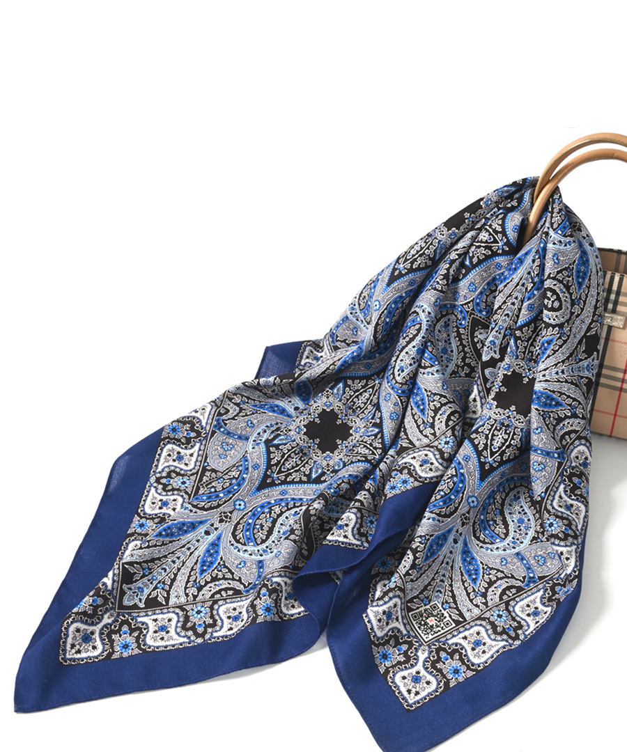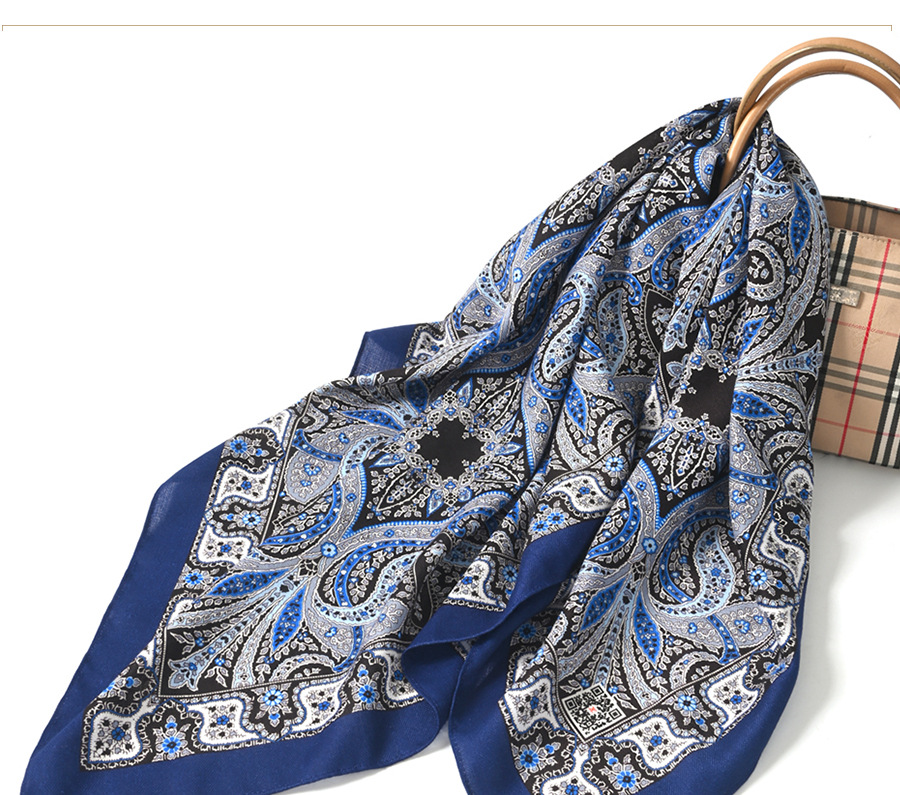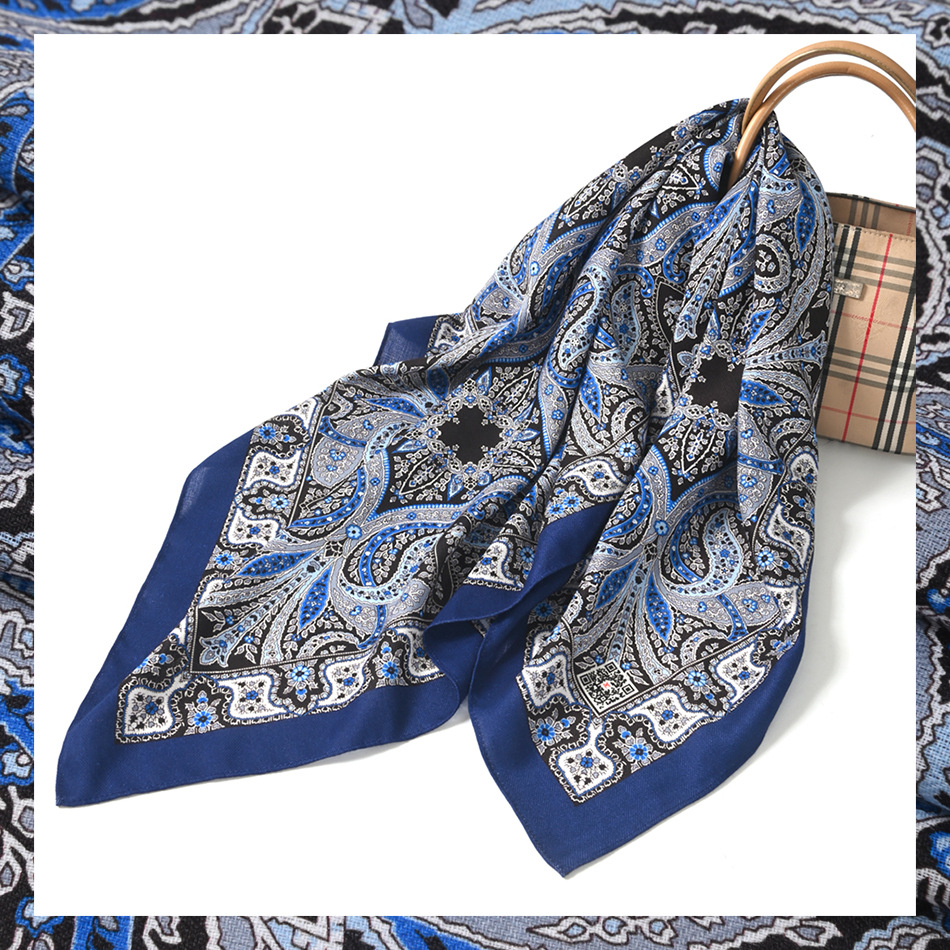 새로운 숙녀 푸른 염료 바람 양면 인쇄 발리 원사 큰 광장 스카프 빈티지 예술적 페이즐리 캐슈 꽃 실크 스카프스토어 가기