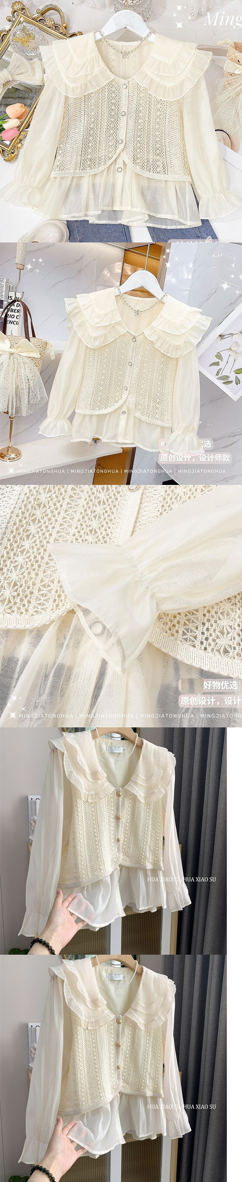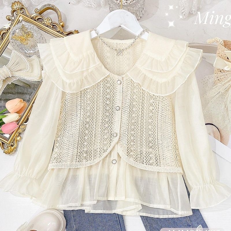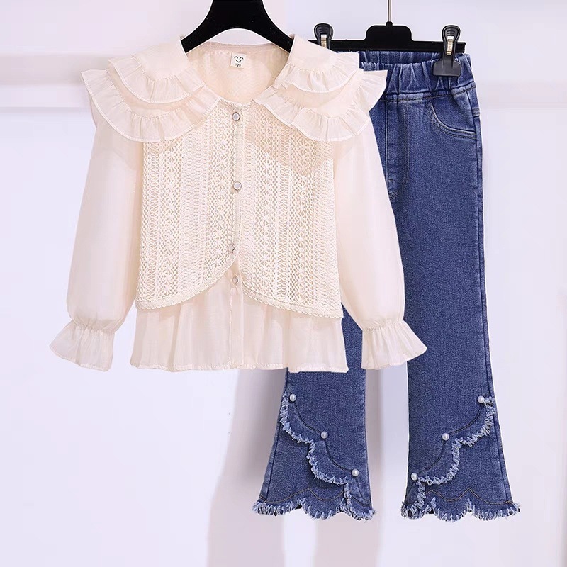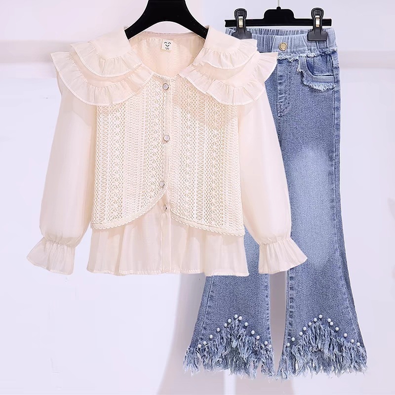 소녀의 봄 세트 새로운 스타일 유행 인형 칼라 셔츠 어린이 청바지 봄 옷