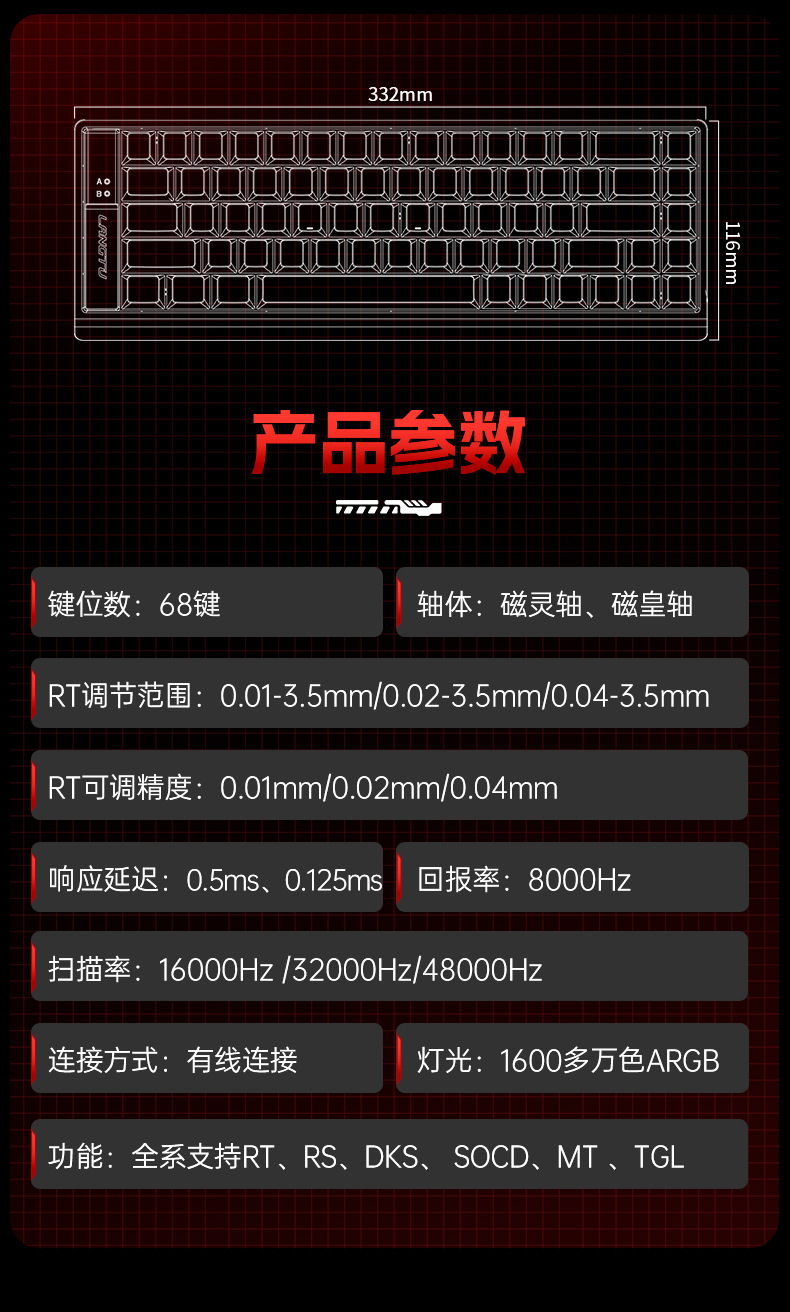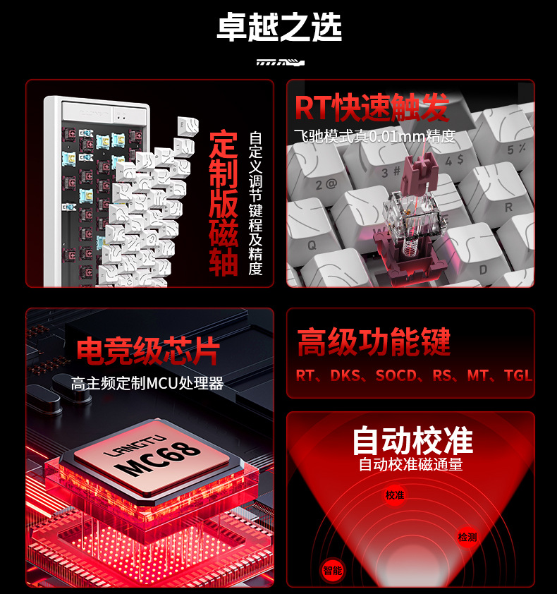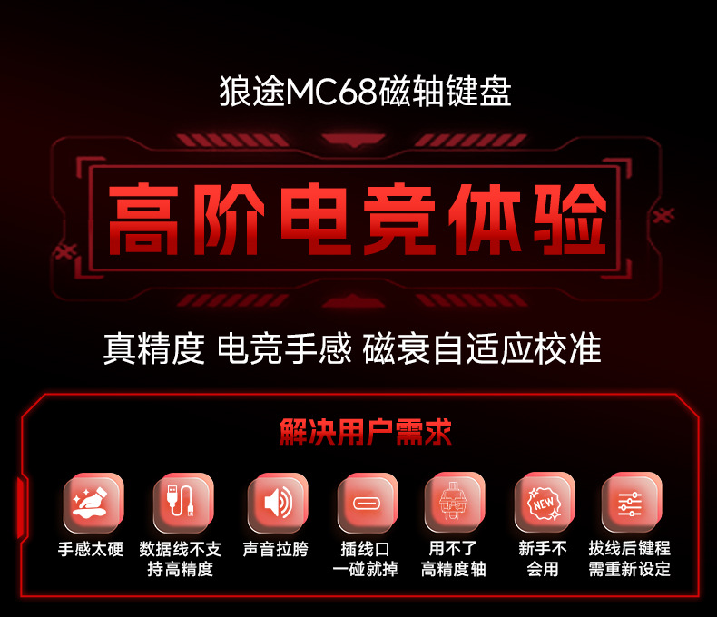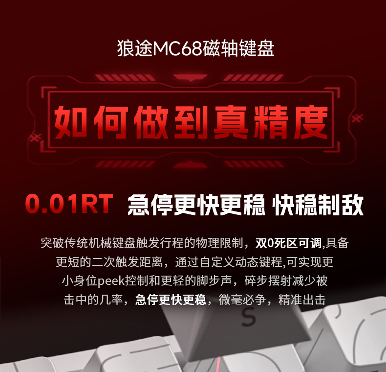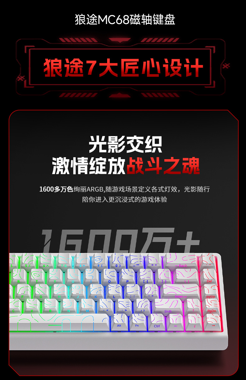 狼途MC68磁轴机械键盘0死区全键热插拔竞技游戏高颜值有线键盘