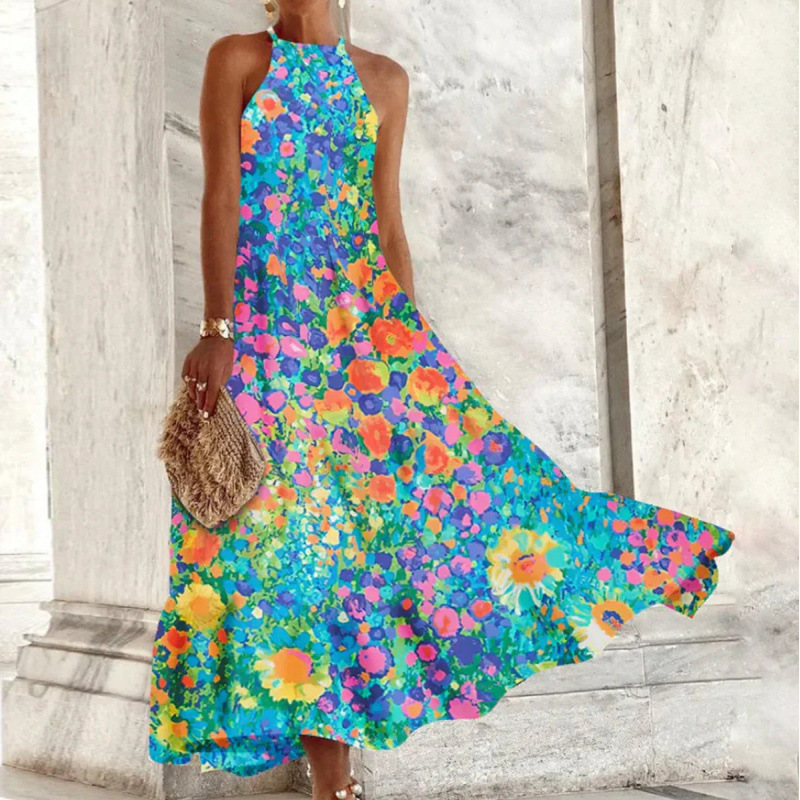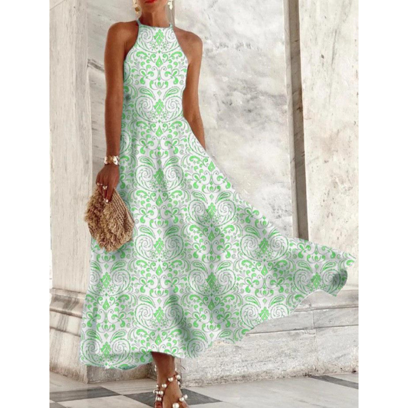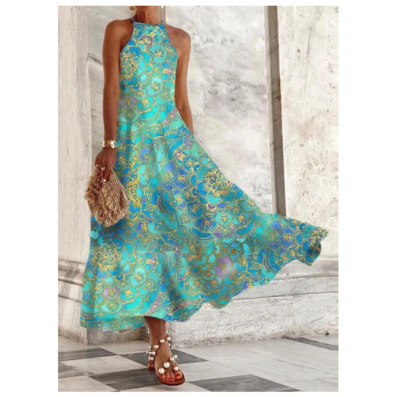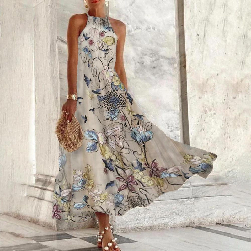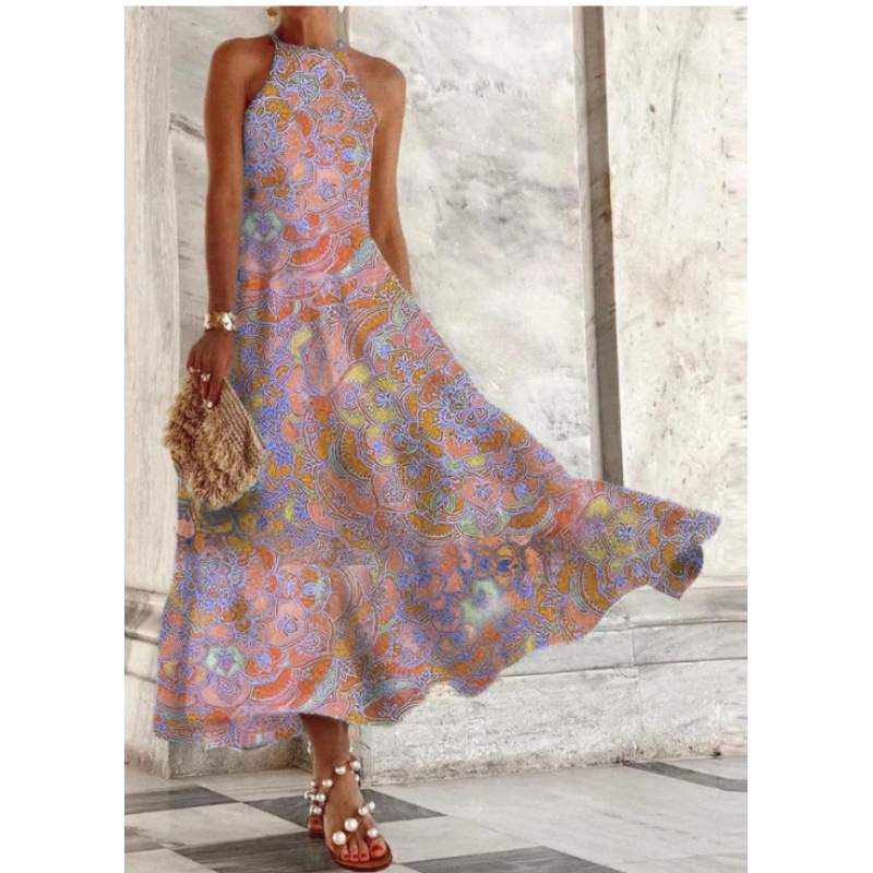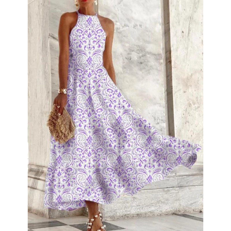 2023 국경을 넘는 아마존 독립 역 새로운 민소매 여성 원피스 파란색과 흰색 도자기 색상 긴 편안한 원피스스토어 가기