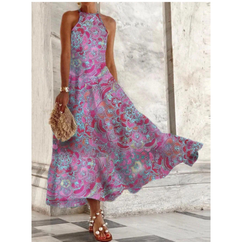 2023 국경을 넘는 아마존 독립 역 새로운 민소매 여성 원피스 파란색과 흰색 도자기 색상 긴 편안한 원피스
