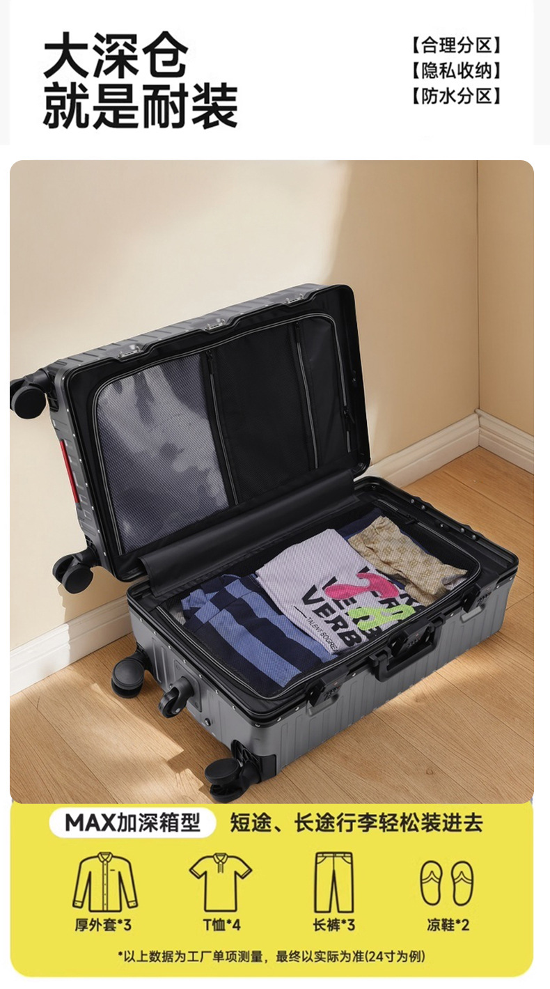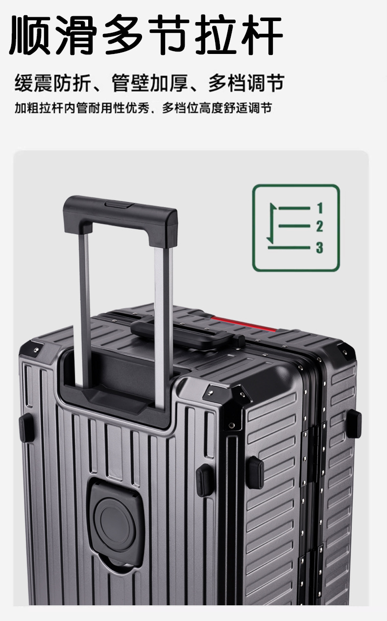 하이 엔드 알루미늄 프레임 다기능 수하물 2024 탑승 상자 타이로드 암호 상자 유니버설 휠 가방스토어 가기